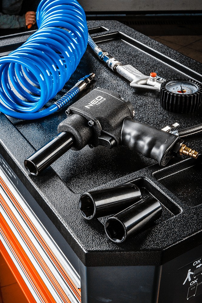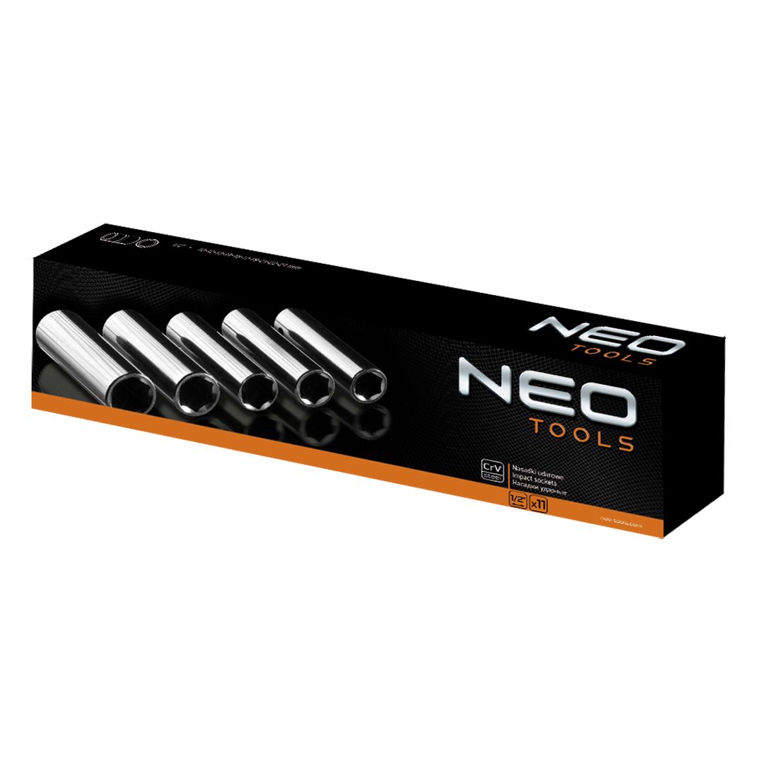 Nasadki udarowe sześciokątne, długie, 1/2", zestaw 11 szt., 10, 11, 12, 13, 14, 16, 17, 19, 21, 22, 24 mm, stal CrV, metalowa kaseta do przechowywania