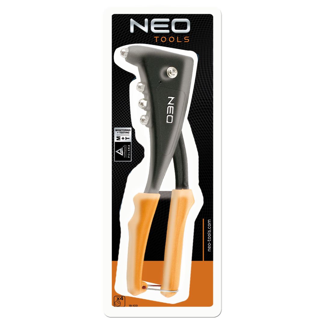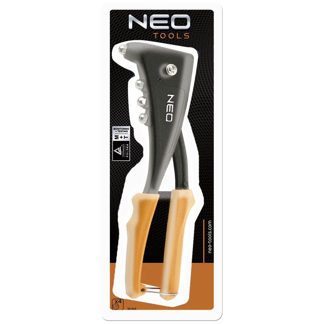 Nitownica do nitów stalowych i aluminiowych 2.4, 3.2, 4.0, 4.8 mm, 4 końcówki, aluminiowy korpus, pierścień blokujący, O2.4 mm: aluminium, stal, miedź, stal nierdzewna, O3.2 mm: aluminium, stal, miedź, stal nierdzewna, O4.0 mm: aluminium, stal, miedź
