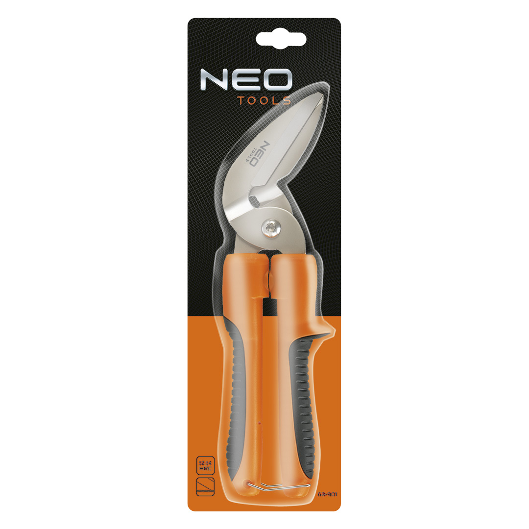 Nożyce do wykładzin, długość 255 mm, grubość ostrza 3.5 mm, twardość ostrza 52 - 54 HRc, szczęki ze stali nierdzewnej J2, ząbkowane ostrze, dwumateriałowy uchwyt