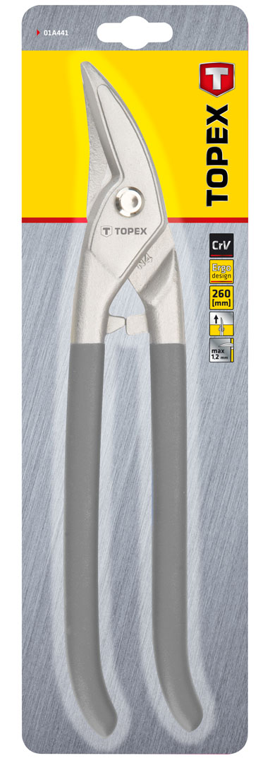 Nożyce sztancowe do cięć kształtowych 260 mm, nakładki gumowe na rękojeść, DIN6438