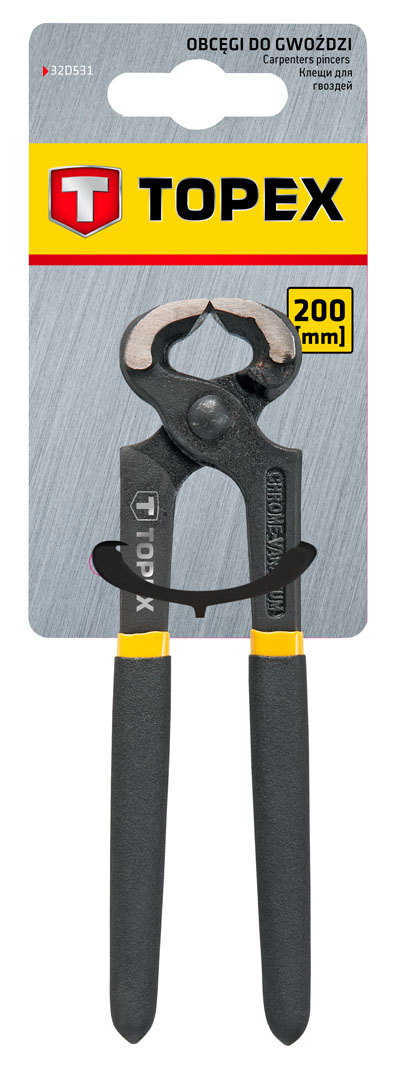 Obcęgi do gwoździ 200 mm, stal CrV, elastyczna wykładzina uchwytu