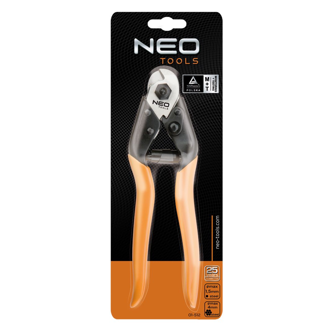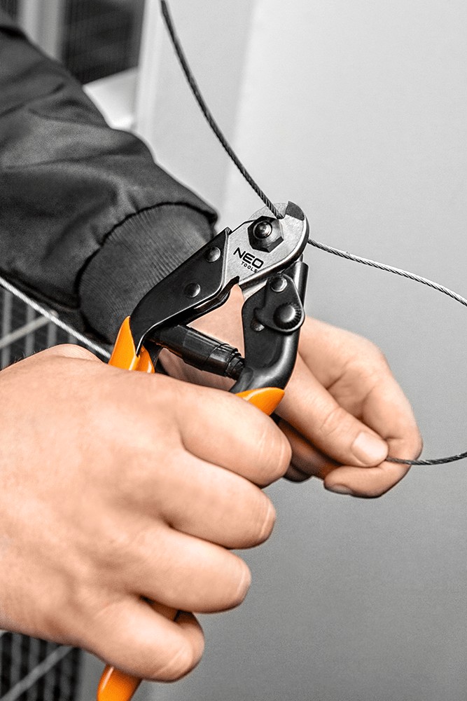 Obcinak do drutów i linek stalowych, 190 mm, zakres cięcia: dla linek stalowych maksymalna średnica 4.0 mm, dla drutu stalowego 1.5 mm, hartowane szczęki, stal CrV, uchwyt pokryty PCV, TÜV