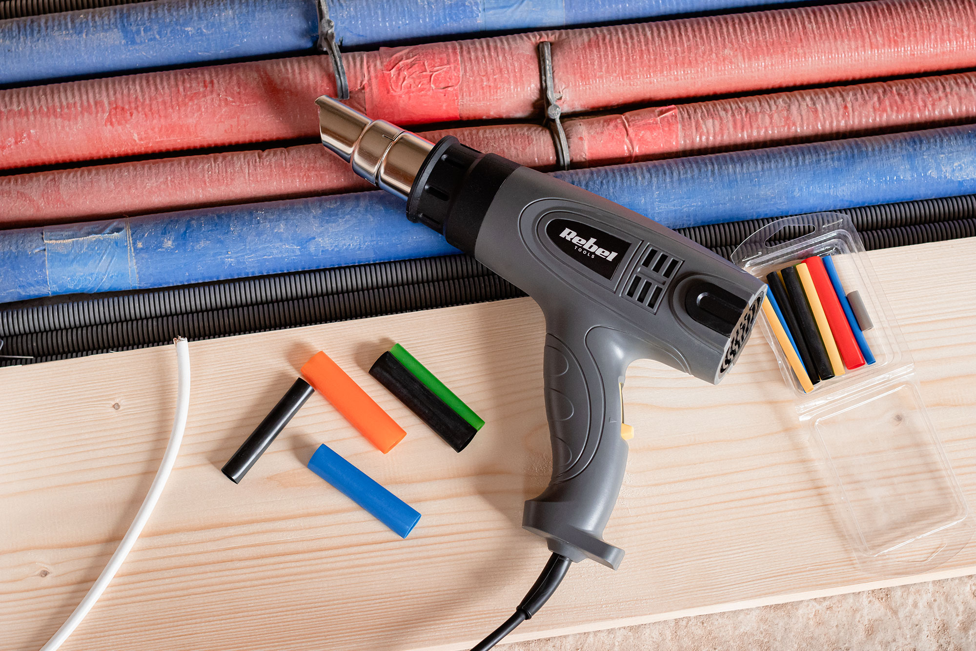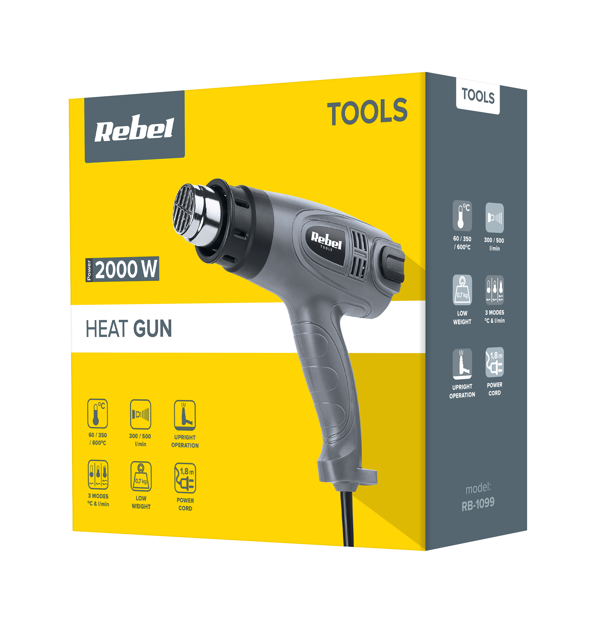 Lubisz domowe majsterkowanie? Wśród elektronarzędzi w Twoim warsztacie nie może zabraknąć opalarki Rebel Tools. Urządzenie to posiada trzy poziomy ustawienia temperatury i przepływu powietrza, co w połączeniu z czterema nasadkami na dyszę, pozwoli wy