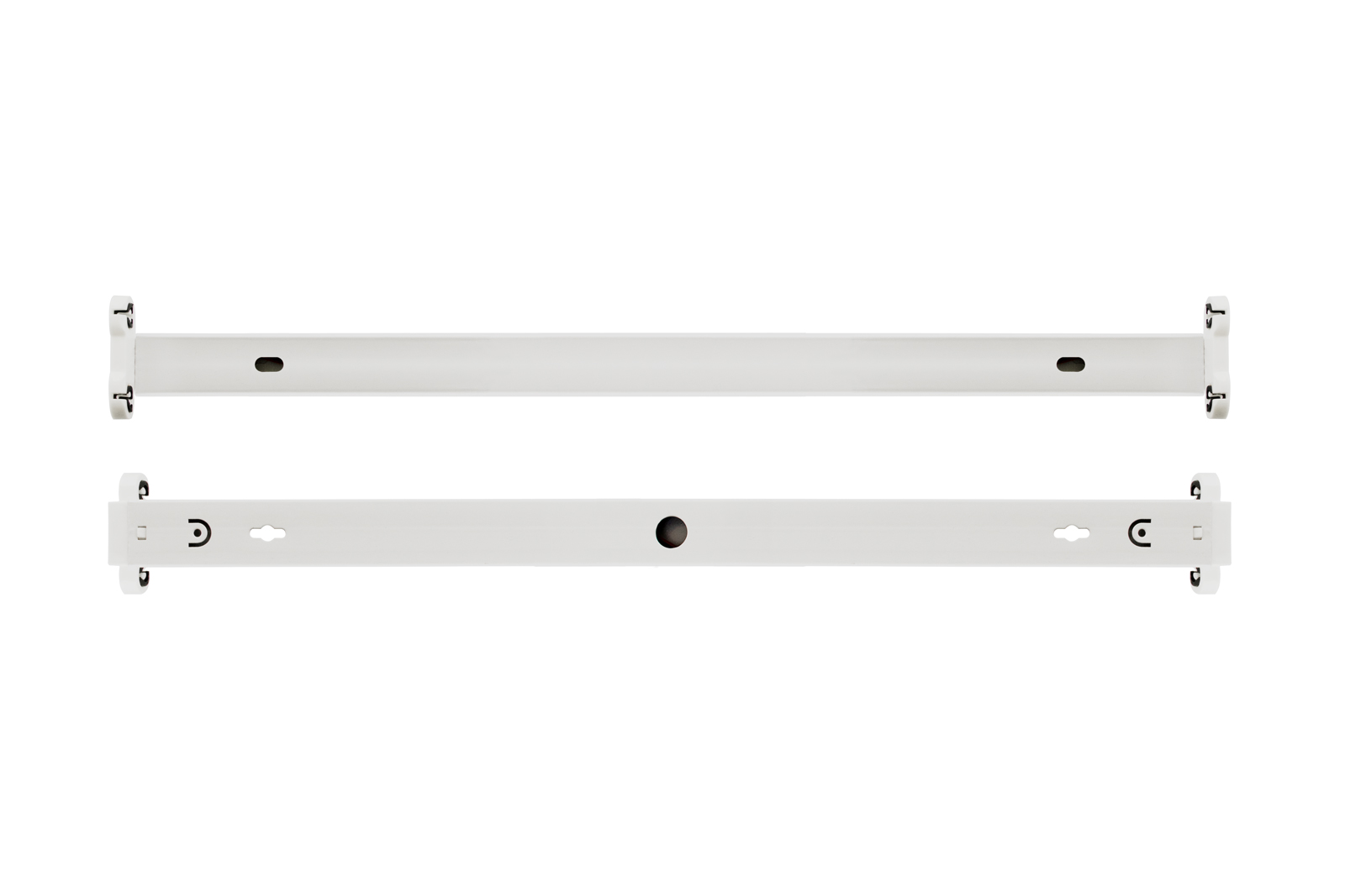 nowoczesna oprawa metalowa typu belka do montażu natynkowego lub naściennego dla 2. świetlówek 60cm T8 z trzonkiem G13 dwustronnie zasilanychlampa wykonana z trwałej i grubej stali odpornej na uszkodzenia mechaniczne pozwala na użycie w trudnych waru