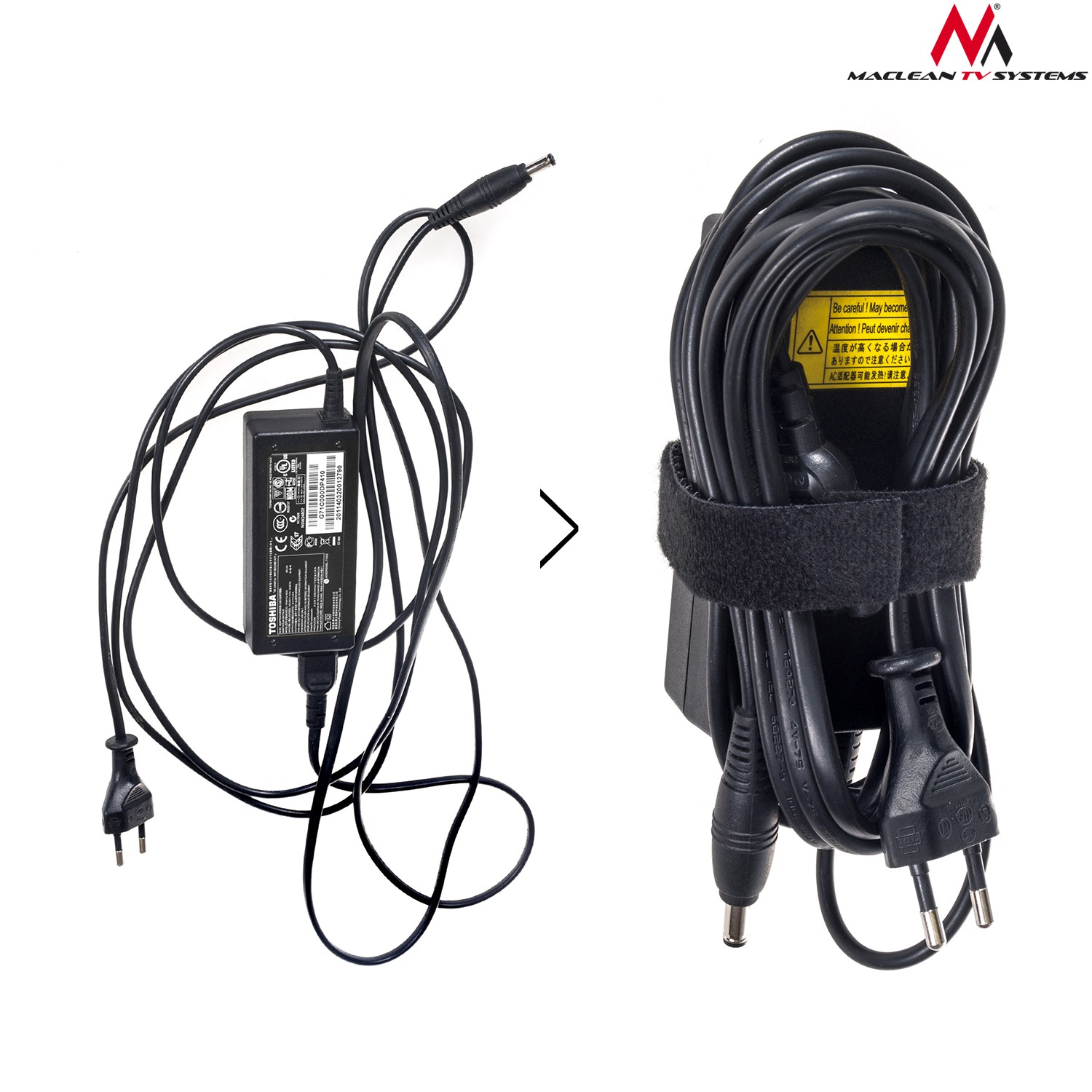 Organizator kabli taśma rzep dwustronna 20mm*15,3mMaclean MCTV-542Dwustronna taśma typu rzep (z jednej strony haczyki, z drugiej pętelki) doskonale nadaje się do porządkowania i organizacji kabli przy sprzęcie komputerowym, hi-fi, gospodarstwa domowe