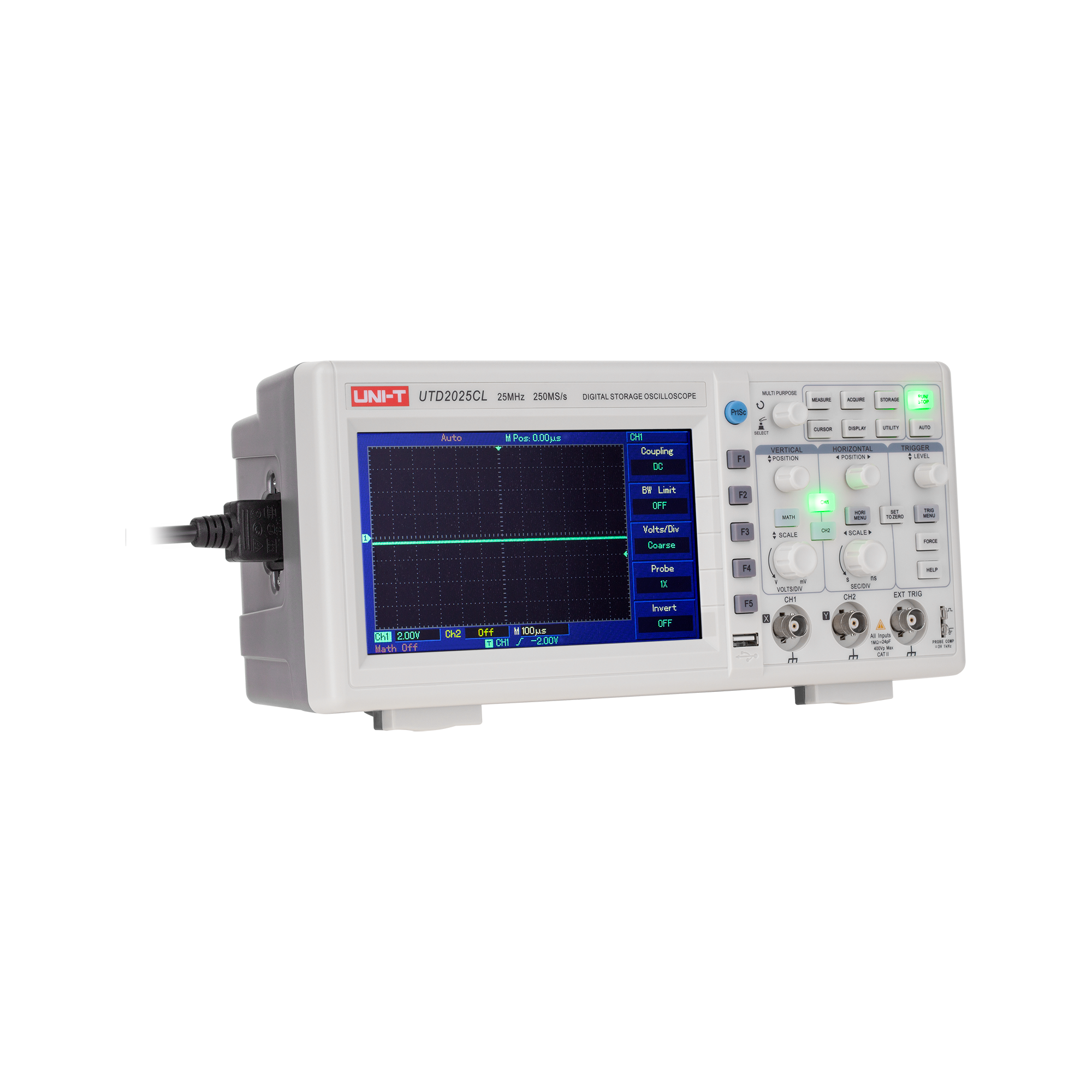GŁÓWNE PARAMETRYSzerokość pasma: 25 MHzIlość kanałów: 2Częstotliwość próbkowania: 250 MS/sCzas narastania: <14 nsGłębokość pamięci: 25 kptsSzybkość przechwytywania przebiegów: >2000 wfms/sCzułość odchylania pionowego: 1 mV/div ~