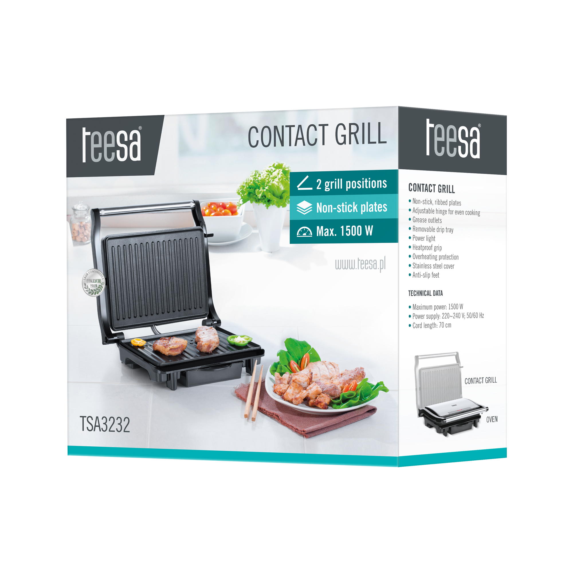 Mały grill elektryczny Teesa TSA3232Znudziły Ci się tradycyjne kanapki na śniadanie? A może naszła Cię ochota na grillowane przekąski w deszczowy dzień? Domowy grill elektryczny z pokrywą ze stali nierdzewnej Teesa pozwoli przygotować Ci chrupiące ka
