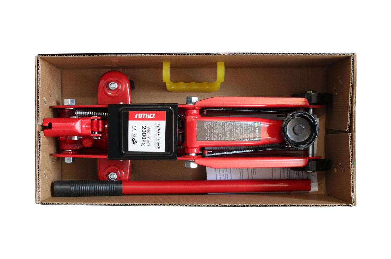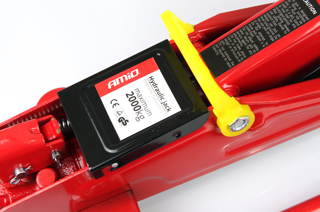 Podjazdowy podnośnik o udźwigu 2000kg wykonany z grubej blachy stalowej, która zapewnia odpowiednią sztywność i wytrzymałość konstrukcji, świadczy o tym waga podnośnika 8,5kg. Posiada zawór spustowy zintegrowany z zaworem bezpieczeństwa. Podnośnik hy