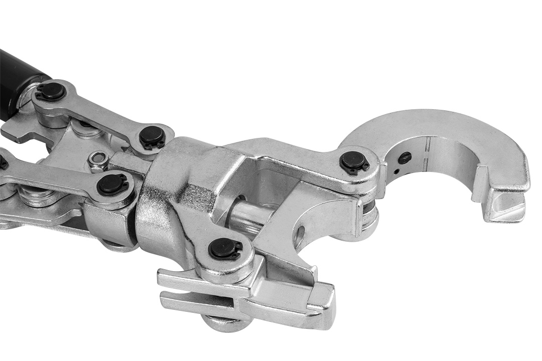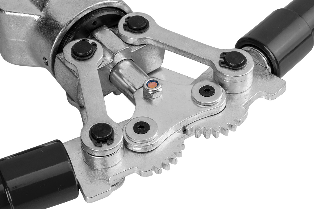 Praska do zaciskania złączek PEX zakres teleskopowych uchwytów 58-83 cm, obrotowa głowica 360 stopni, moc 60kN, walizka, matryce typu U: 16 mm / 20 mm / 25 mm / 32 mm, matryce typu TH: 16 mm / 20 mm / 26 mm / 32 mm, waga 4,26kg, miekki uchwyt, kalibr