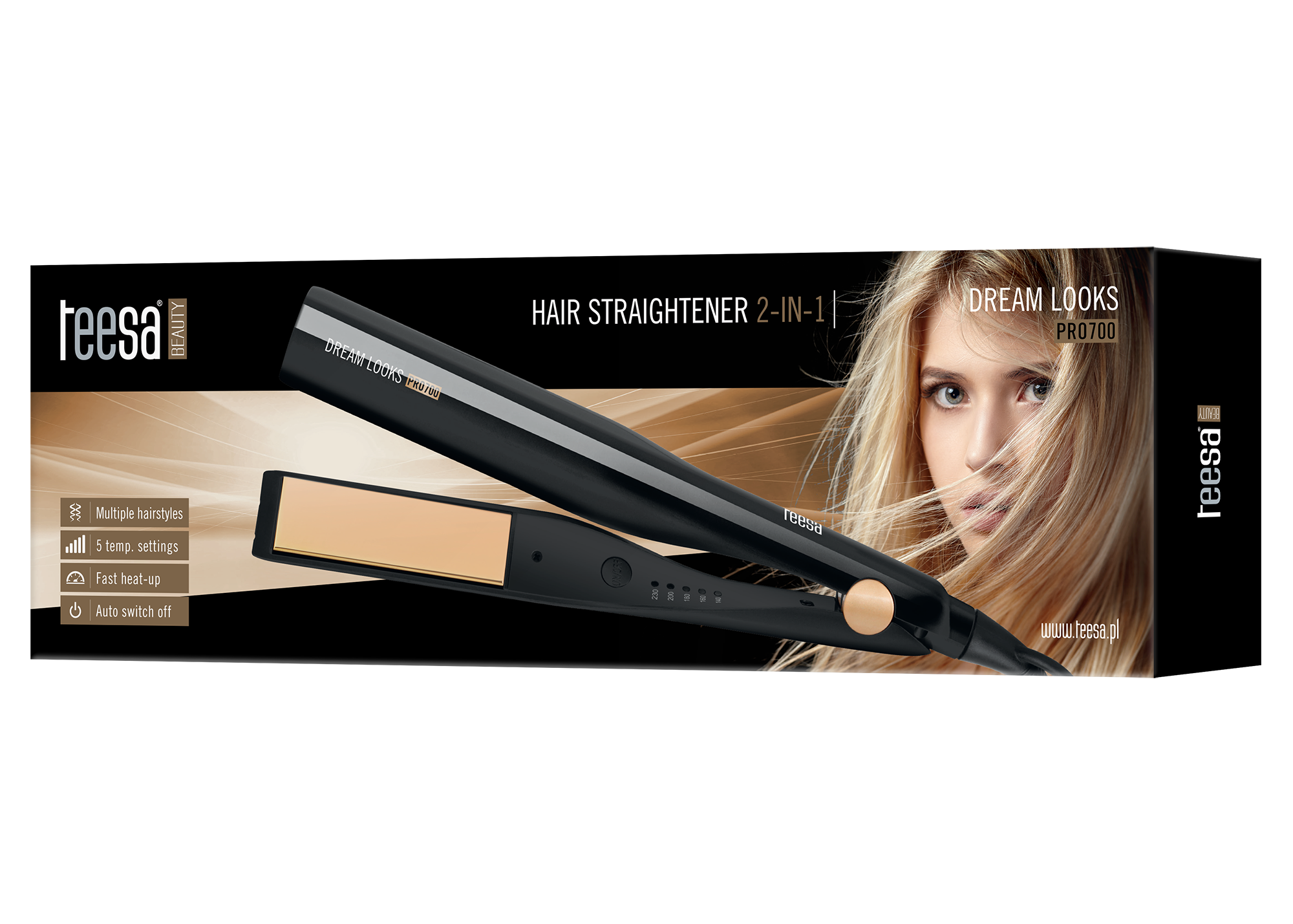 Prostownica 2w1 DREAM LOOKS PRO 700Nie możesz zdecydować się na zakup lokówki czy prostownicy? Po co wybierać, skoro możesz mieć dwa urządzenia w cenie jednego? Dzięki specjalnej budowie Teesa Dream Looks PRO 700 możesz nie tylko idealnie wyprostować