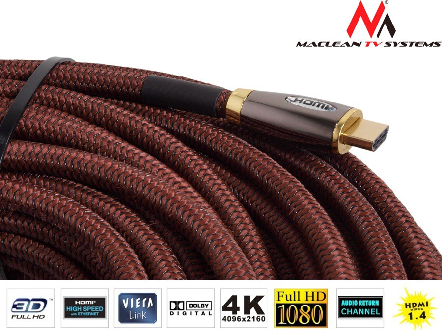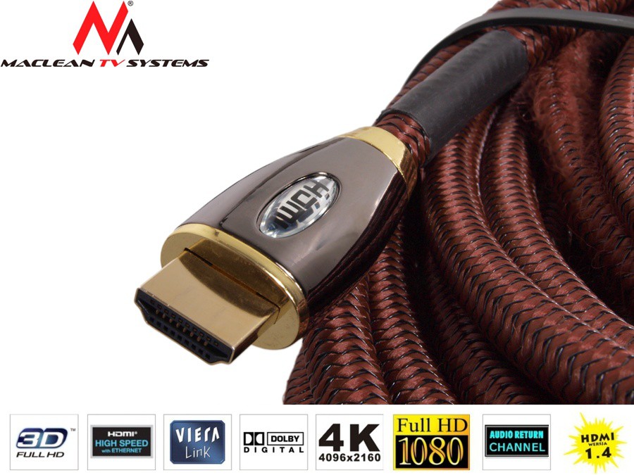 Przewody Maclean zapewniają bezstratny przesył sygnału dla uzyskania najczystszych i najbardziej realistycznych efektów.Opis produktu:Wysokiej jakości przewód audio-wideo Zamontowany przelotowy wzmacniacz zapobiegający utracie sygnału Pozwala n