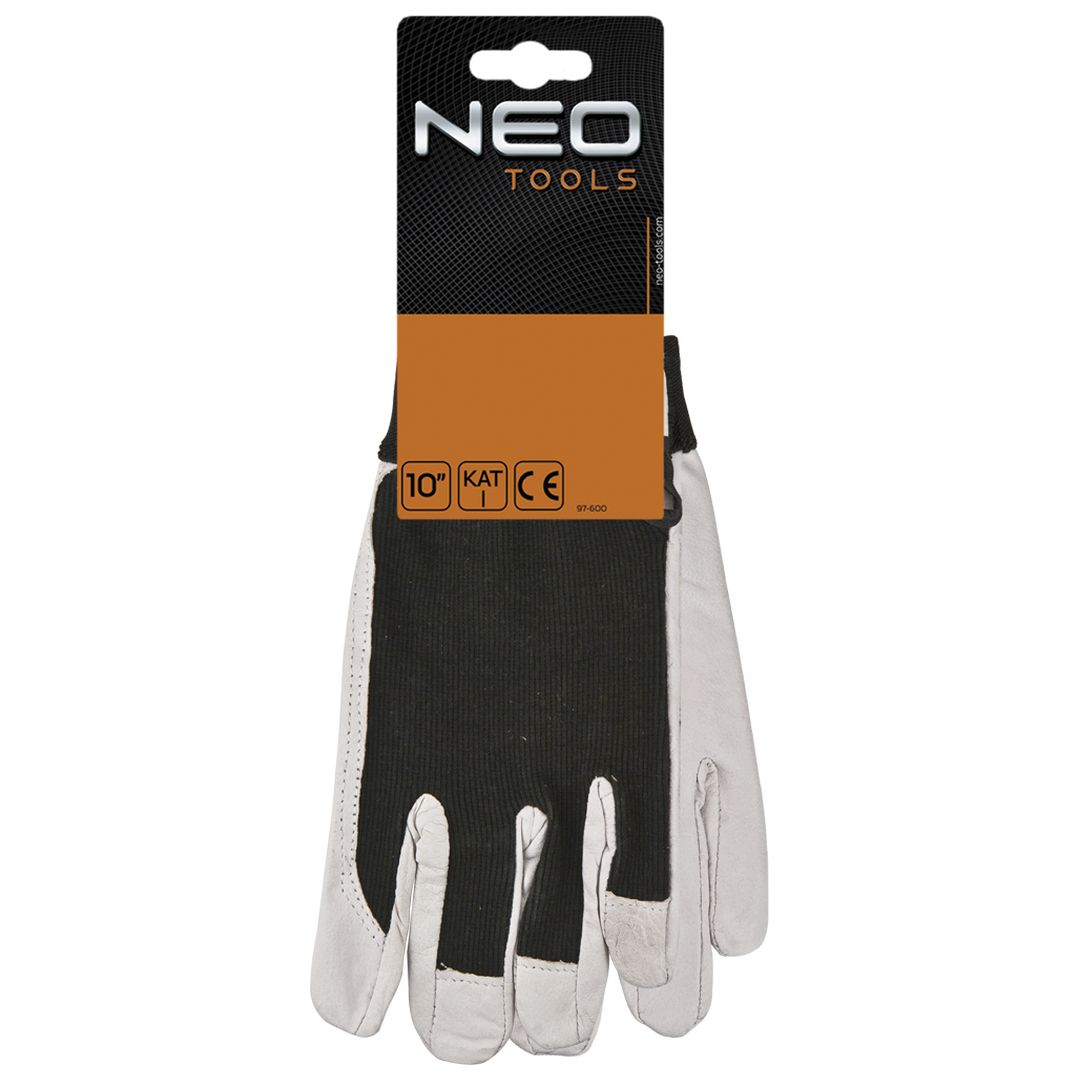 Rękawice robocze, skóra świńska licowa, z rzepem, 10", odporność na ścieranie 3, odporność na przecięcie ostrym narzędziem 1, odporność na rozdzieranie 0, odporność na przekłucie 1, CE
