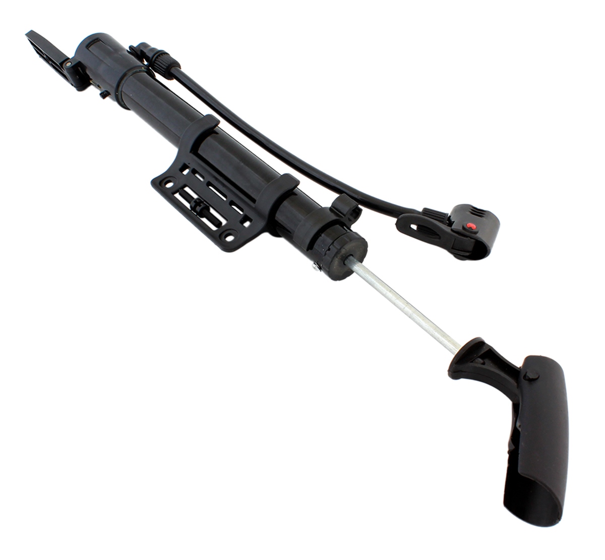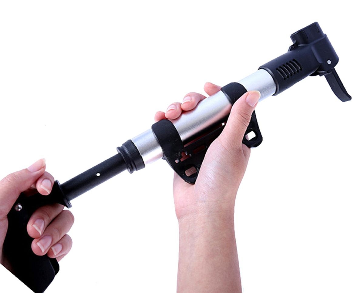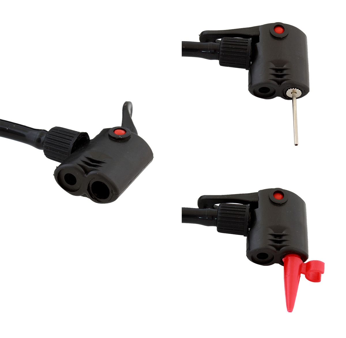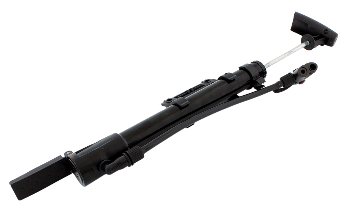 Metalowa, nożna pompka rowerowa z dodatkowymi, wymiennymi końcówkami w zestawie! Doskonale nadaje się również do pompowania materacy, piłek czy pontonów. Końcówka węża wyposażona została w s