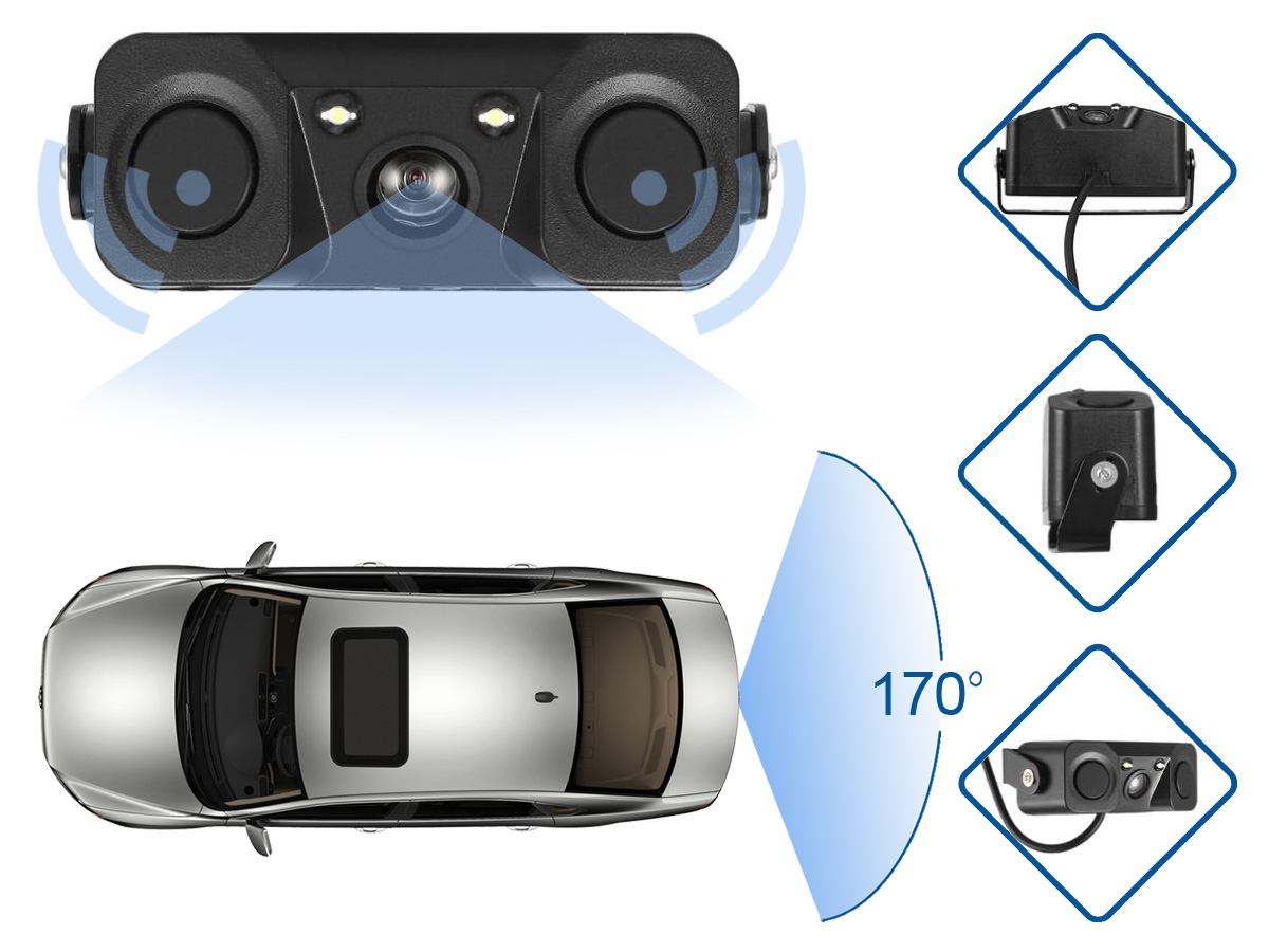 - kamera cofania z diodami LED zapewniającymi widoczność w nocy- automatyczne włączenie kamery po podaniu napięcia (np. z biegu wstecznego)- kamera wodoszczelna oraz pyłoszczelna - wbudowane w kamerze linie pomocnicze - 2 czujniki parkowania- czujnik