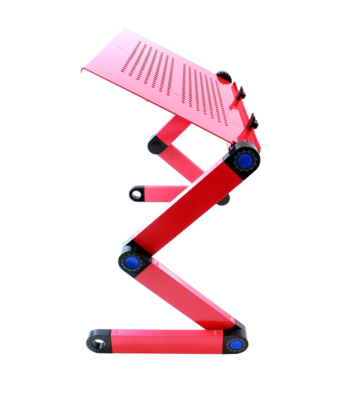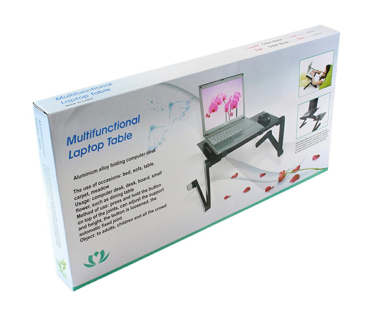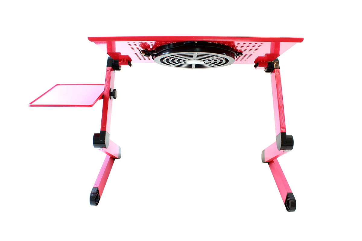 Aluminiowy, regulowany stolik pod laptopa z funkcją chłodzenia. Charakteryzuje się lekką i solidną konstrukcją. Umożliwia komfortowe korzystanie z notebook'a nawet w pozycji leżącej. Pełna regulacja nachylenia blatu oraz nóżek, za