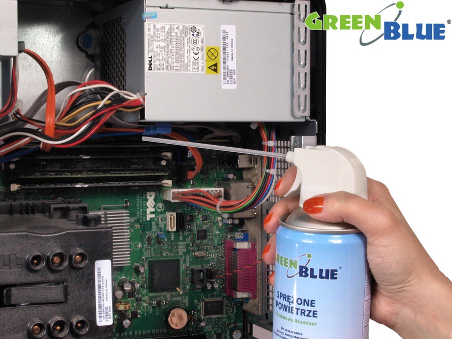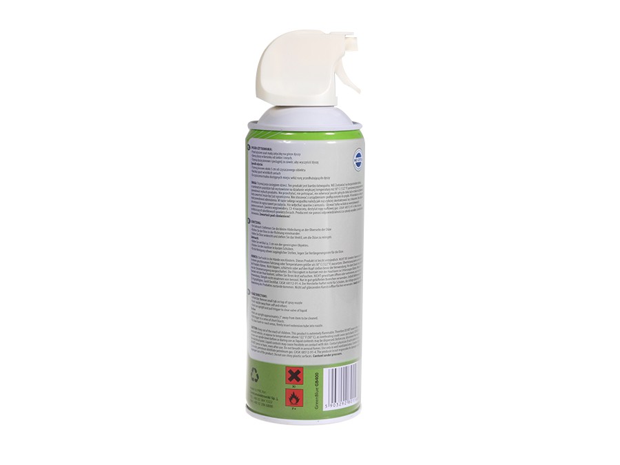 Sprężone powietrze GreenBlue GB400 400ml pistoletowy atomizer - pistol spraySprężony gaz doskonale czyści i usuwa kurz z trudno dostępnych miejsc w urządzeniach biurowych takich jak: laptopy, klawiatury, obudowy komputerowe, drukarki, faksy itp. wy