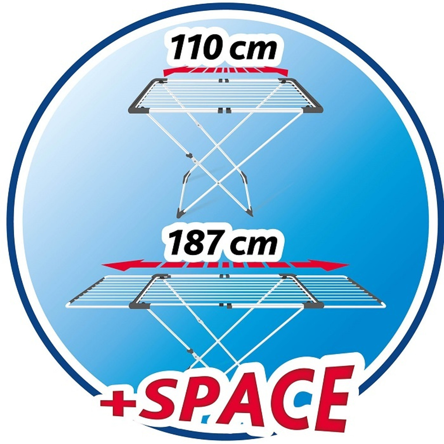 Suszarka do prania Surprise z rozsuwanymi ramionami stworzona została z myślą o elastycznym rozmieszczeniu dużej ilości prania.Dzięki dwóm nachodzącym na siebie, niezależnym stelażom, umożliwia dowolne, stabilne rozmieszczenie prania. Wyposażona jest