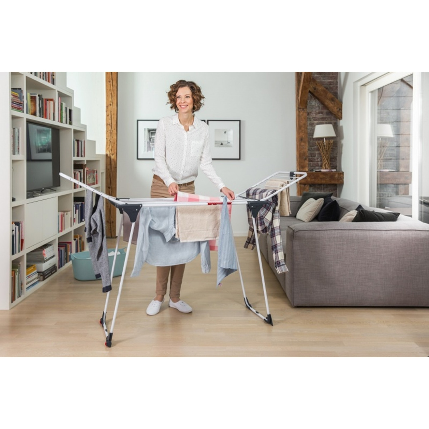 Suszarka na duże pranie King to szeroka suszarka stołowa, która nie tylko zmieści dużą ilość prania, ale również przyśpieszy proces prasowania.Wyposażona została w grube, aluminiowe linki zapobiegające gnieceniu prania i zapewniające stabilność susze
