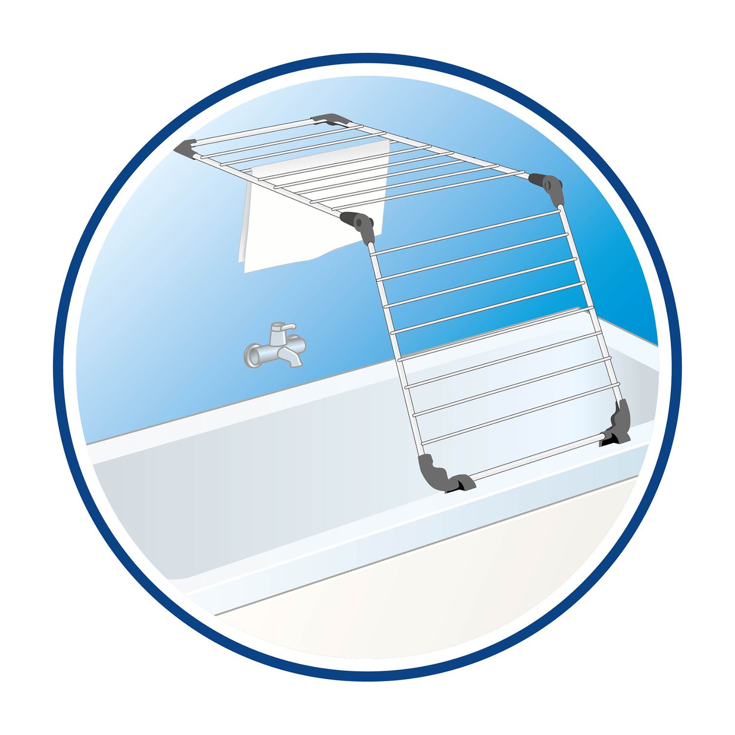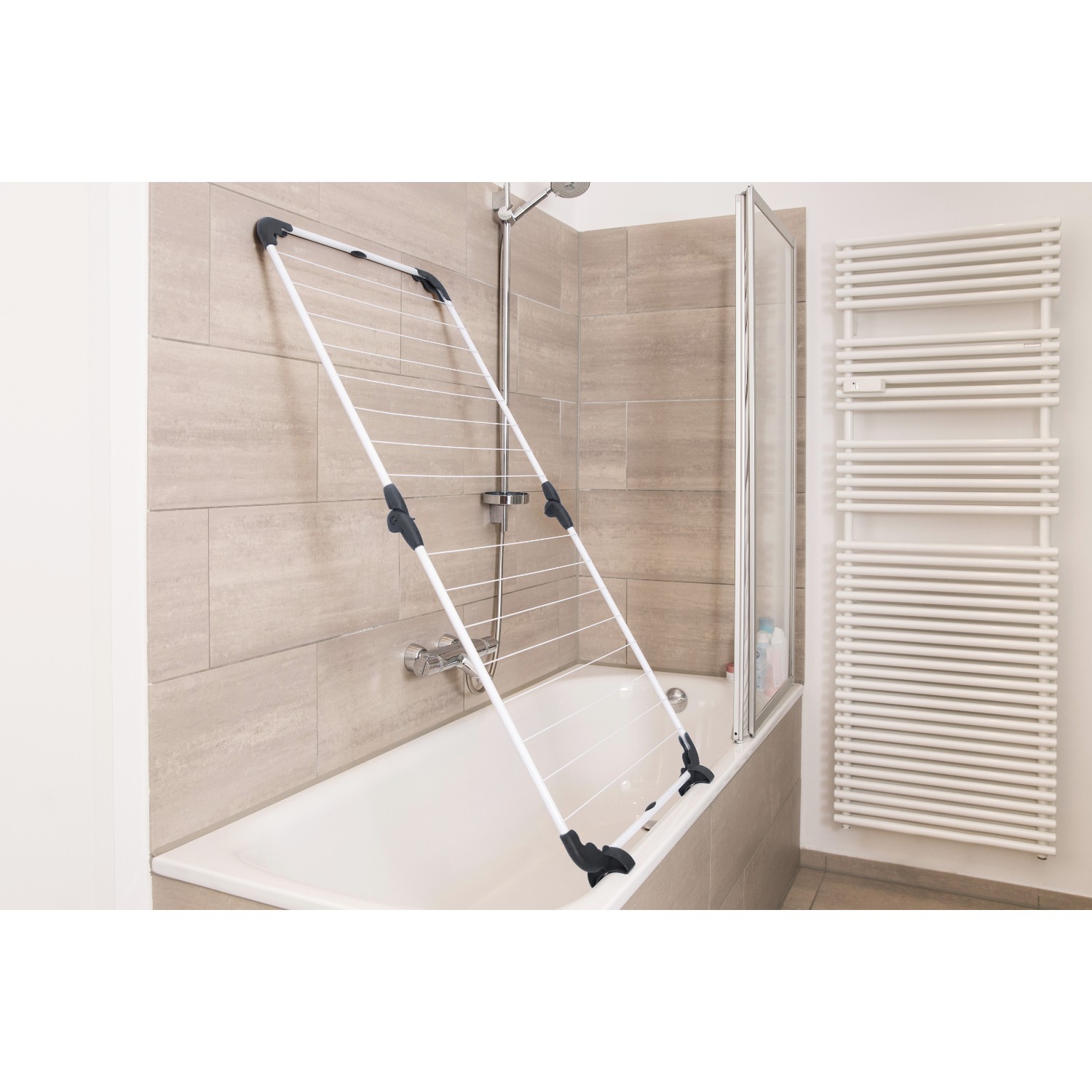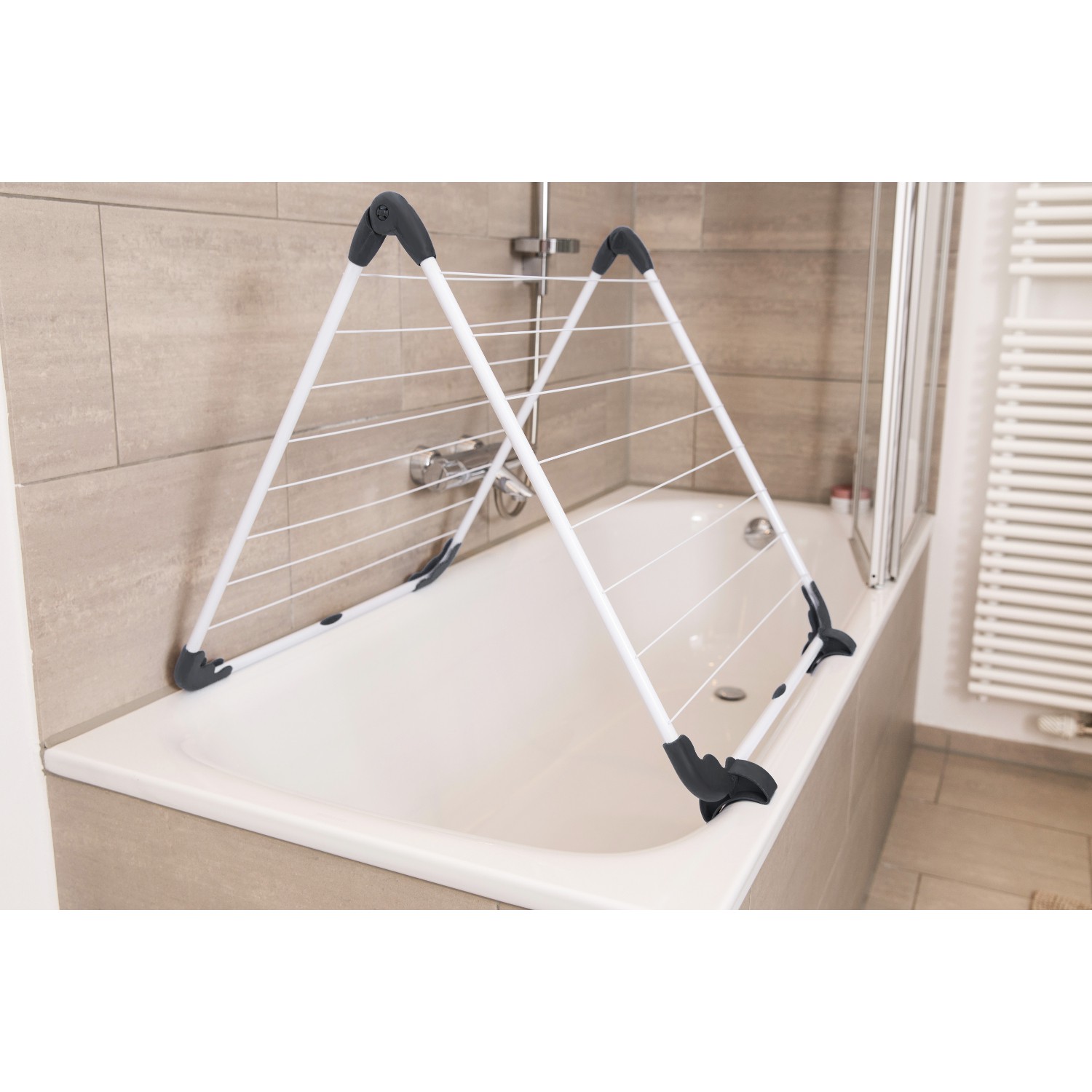 Suszarka nawannowa Vileda Acrobath. Idealna do małych przestrzeni na codzienne pranie. Powstała z myślą o mieszkaniach i domach, w których brak miejsca na rozłożenie dużej suszarki.Suszarka wykorzystuje dodatkową przestrzeń wanny i umożliwia rozłożen