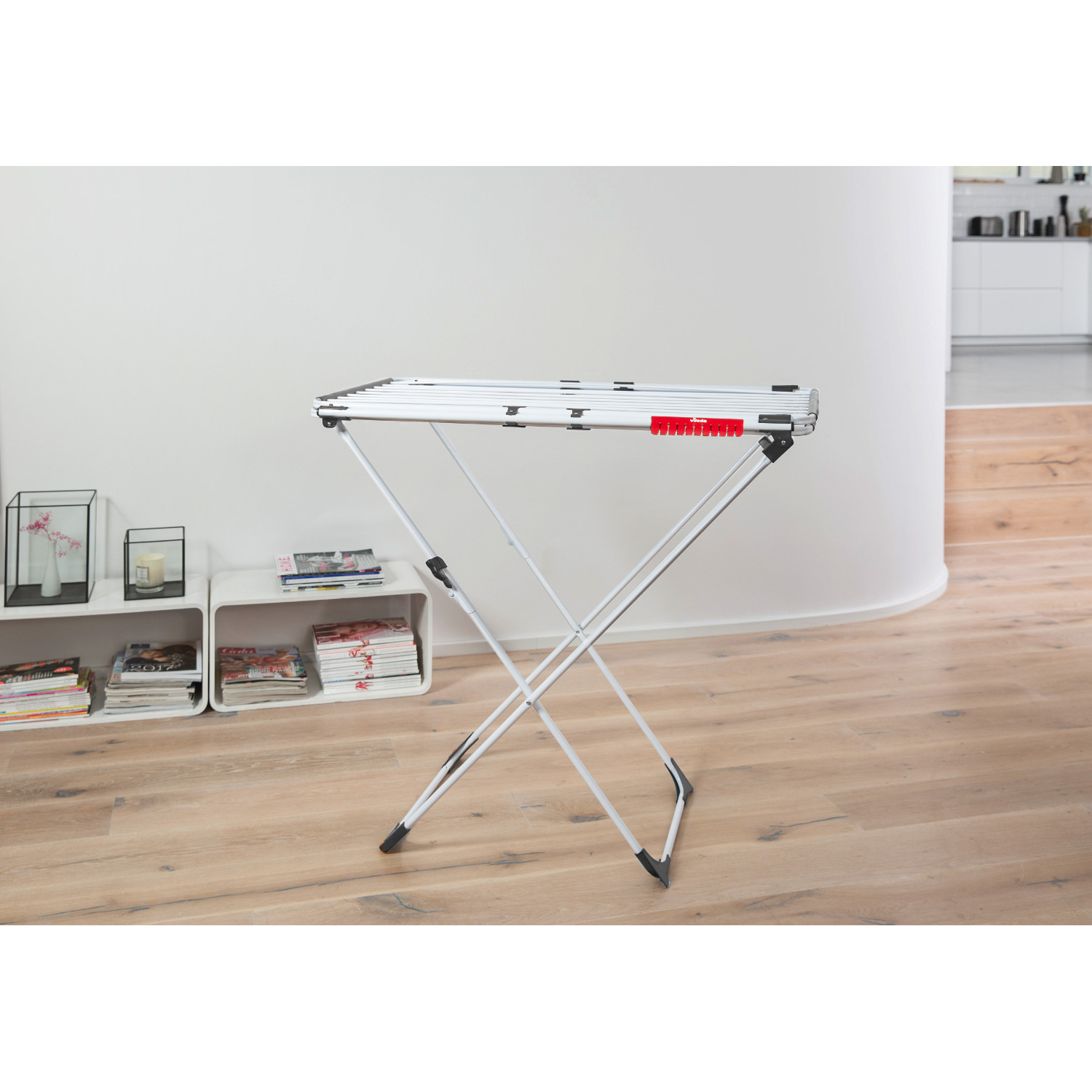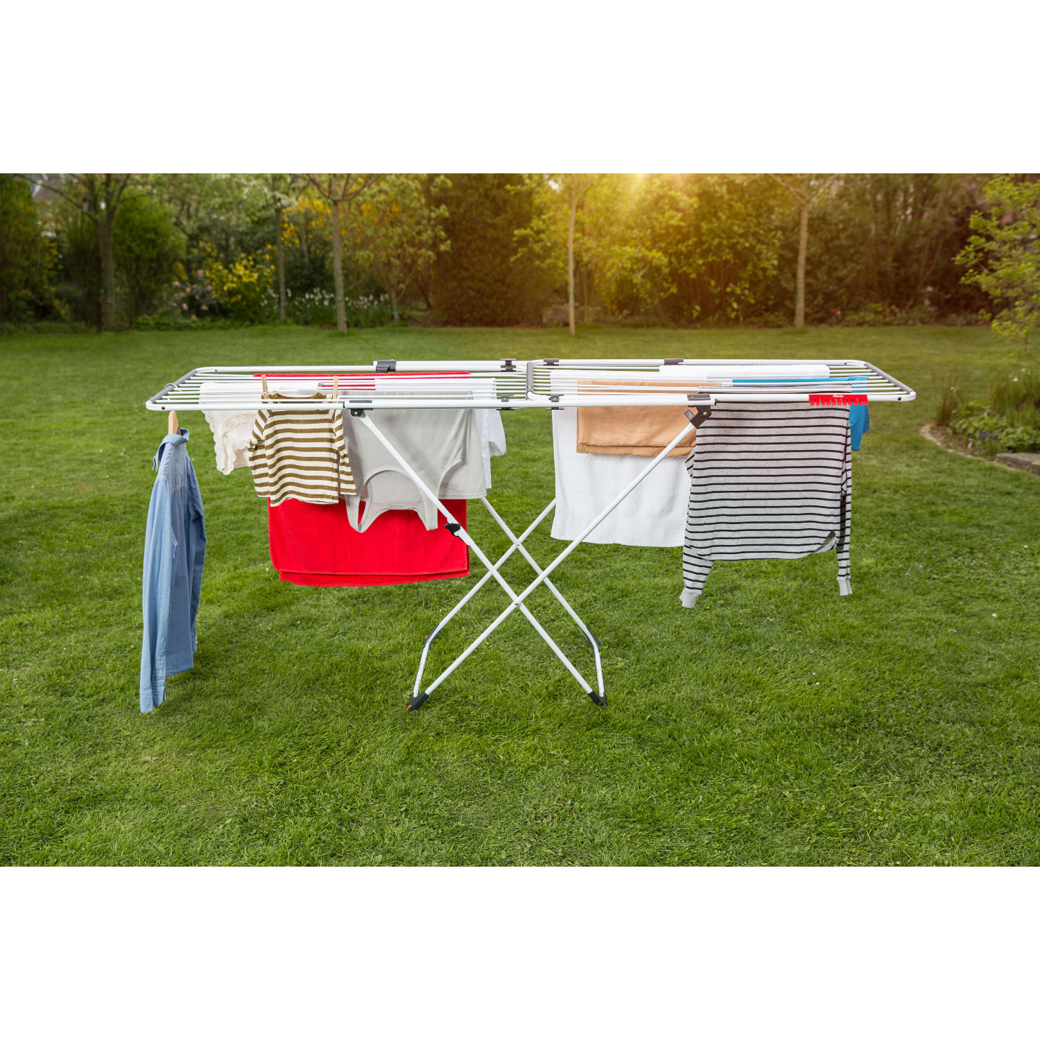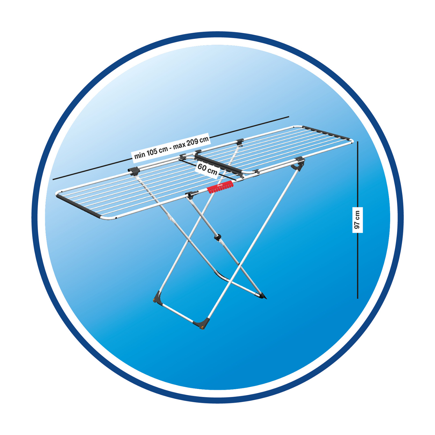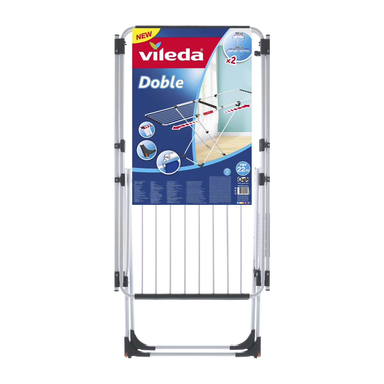 Rozsuwana suszarka Doble z nakładającymi się ramionami idealnie sprawdzi się zarówno w suszeniu małego jak i dużego prania.2 niezależne nachodzące na siebie stelaże zapewniają wszechstronność i możliwość regulacji długości od 105 cm do 209 cm.Dzięki