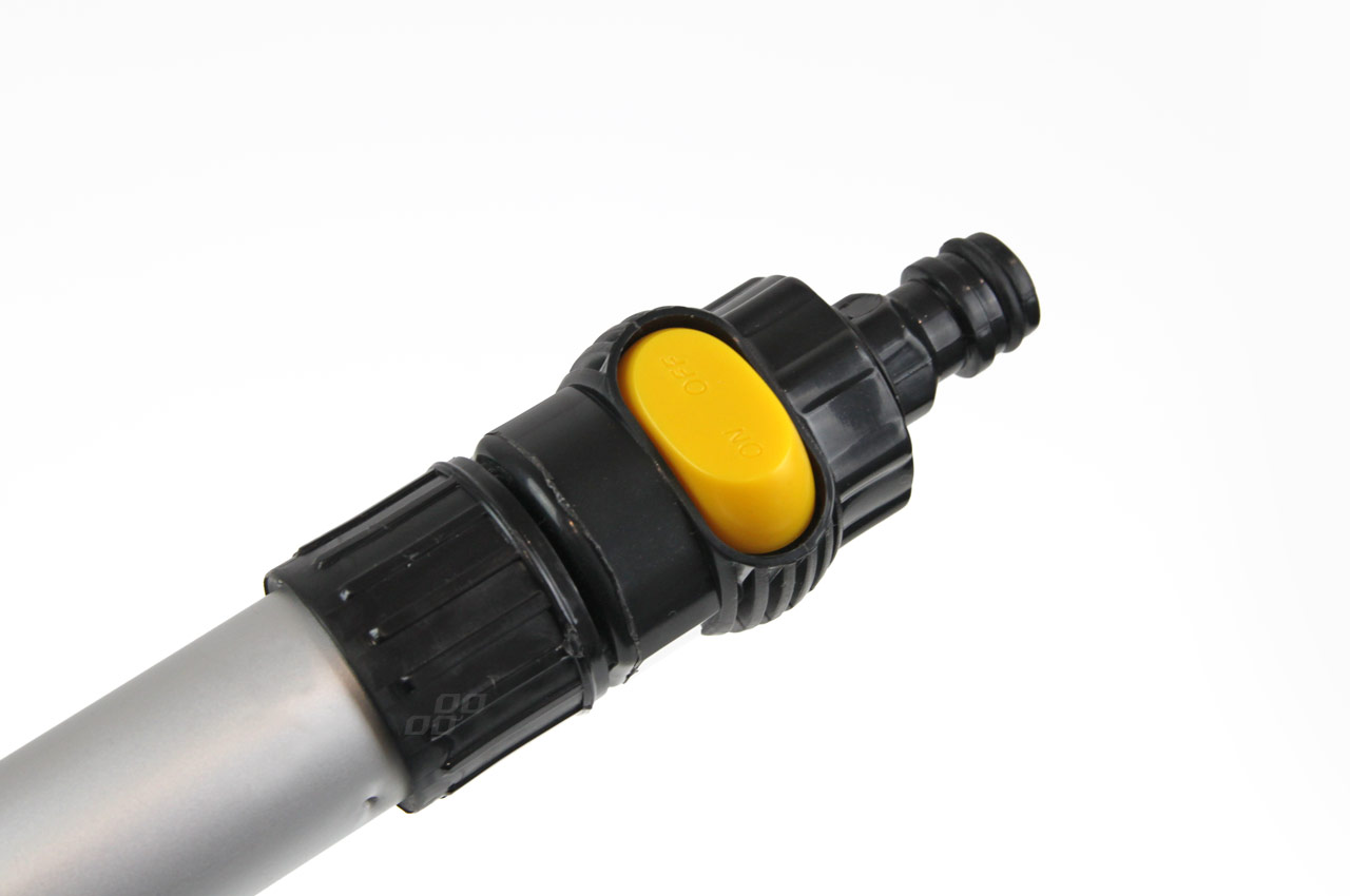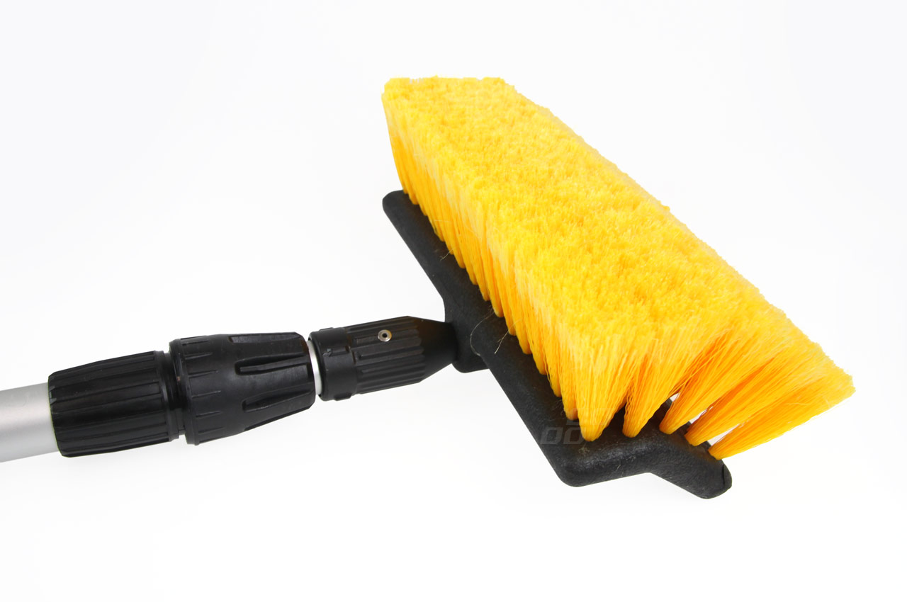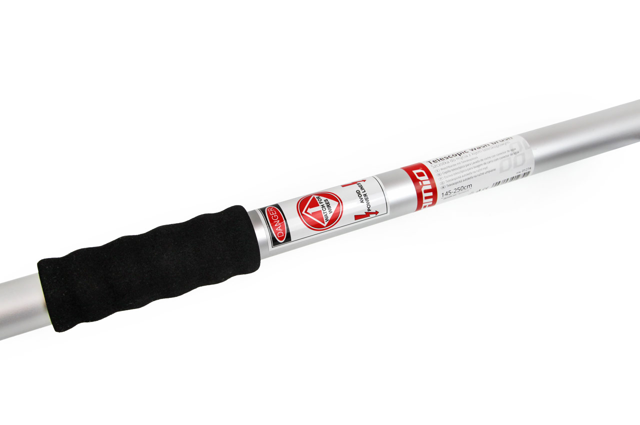 Solidna szczotka teleskpopowa z aluminiowym trzonkiem o regulowanej długości od 145 do 250cm. Szczotka wykonana z miękkich włókien nie niszczących powłoki lakieru. Trzonek posada piankowe uchwyty, szybkozłączkę do podłączenia węża z wodą oraz zawór p