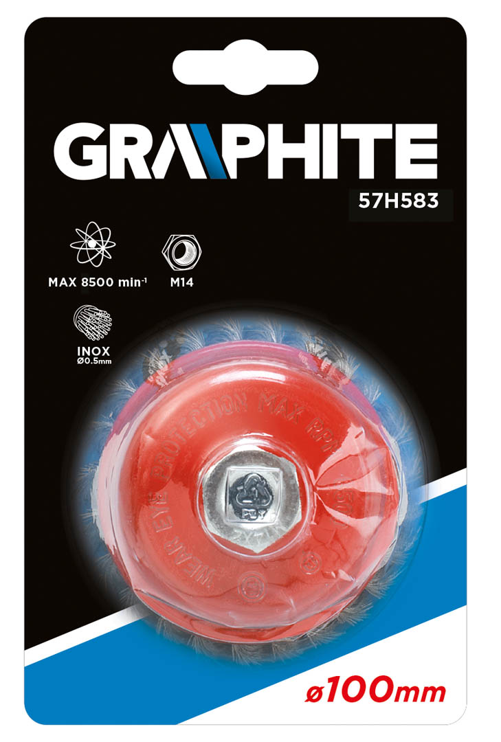 Szczotka druciana doczołowa 100 mm x M14, INOX, drut splatany O 0.5 mm