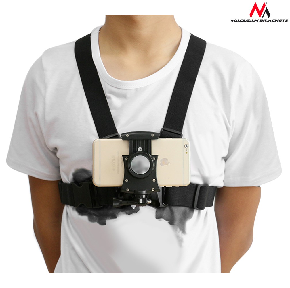 Uchwyt szelki sportowe uniwersalne do telefonu, aparatu, kamer GoPro i innych Maclean MC-773Szelki na klatkę piersiową + szybkozłączka. Jedyne szelki z możliwością montażu smartfona! oraz aparatu, kamer GoPro i innych.Wysokiej jakości szelki Maclean