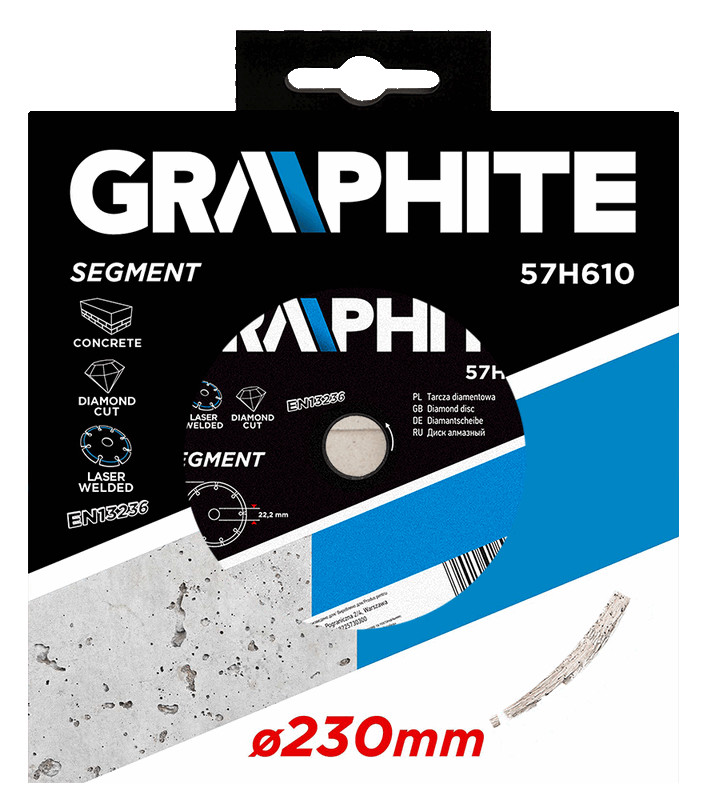 Tarcza diamentowa 230 x 22.2 mm, segmentowa, spawana laserowo, segment 8 x 2.5 mm
