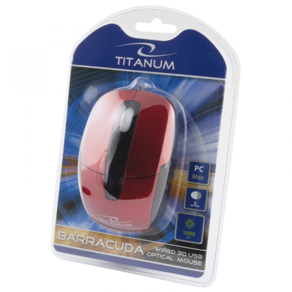 TM108R Mysz przewodowa 3D optyczna USB Barracuda czerwona TitanumNowoczesna przewodowa myszka optyczna 3D do komputerów stacjonarnych i notebooków.Specyfikacja:Ergonomiczna i miła w dotyku - idealnie leży w dłoni.Nie pow