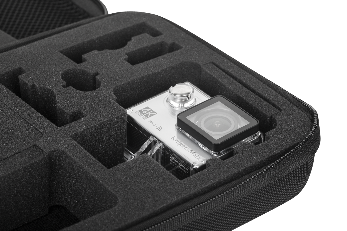 Lubisz uwieczniać ważne momenty? Dzięki dedykowanemu etui możesz mieć swoją kamerę sportową Kruger&Matz zawsze przy sobie, bez obawy, że coś jej się stanie w transporcie. Wytrzymała konstrukcja i zastosowana w środku pianka tłumią wstrząs