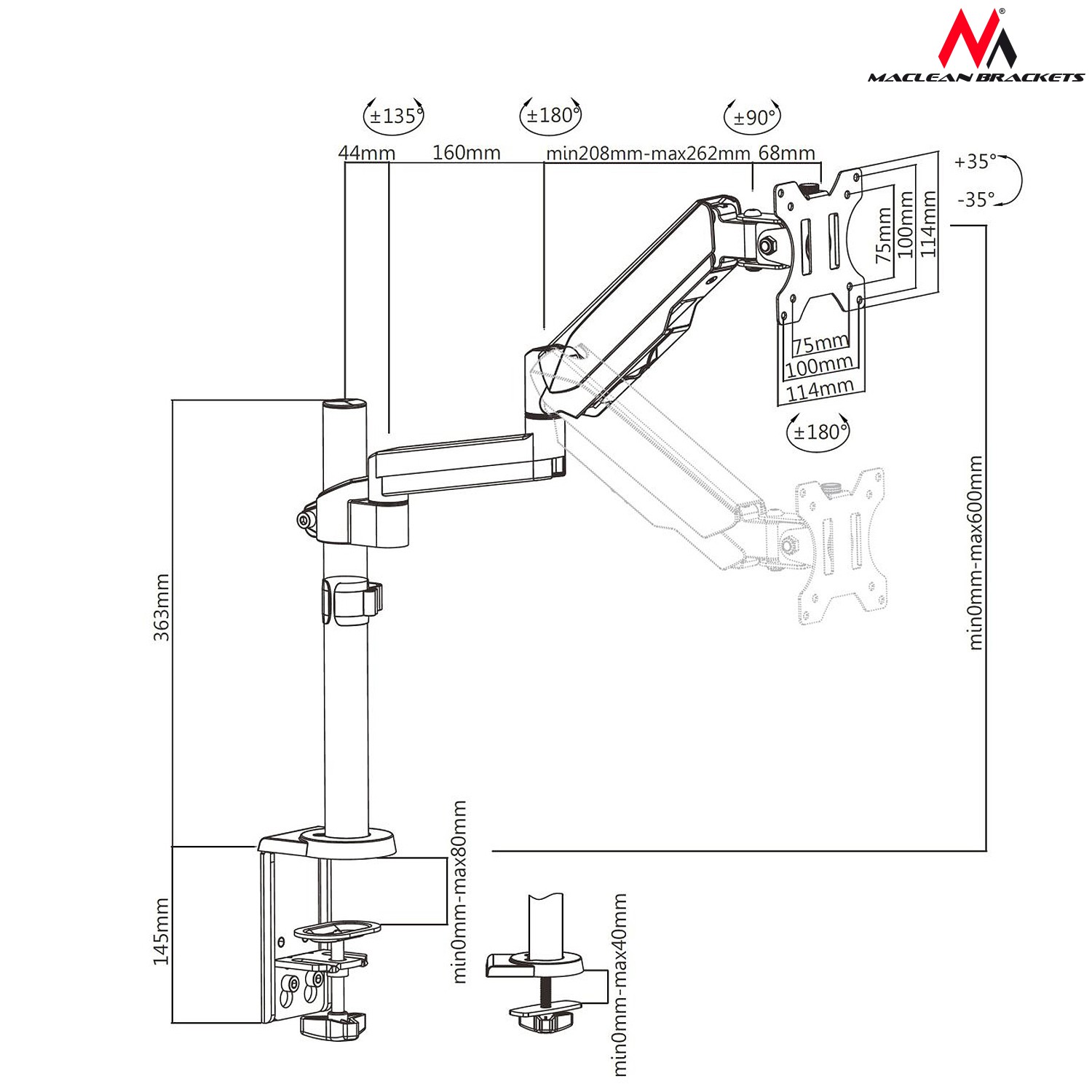 Maclean MC-775Uchwyt biurkowy do monitora na wysięgniku ze sprężyną gazową! Uniwersalny uchwyt do monitora LCD lub LED z możliwością montażu do blatu biurka lub stołu. Uchwyt przeznaczony do monitorów 17" - 32" o maksymalnej wadze 8 kg.