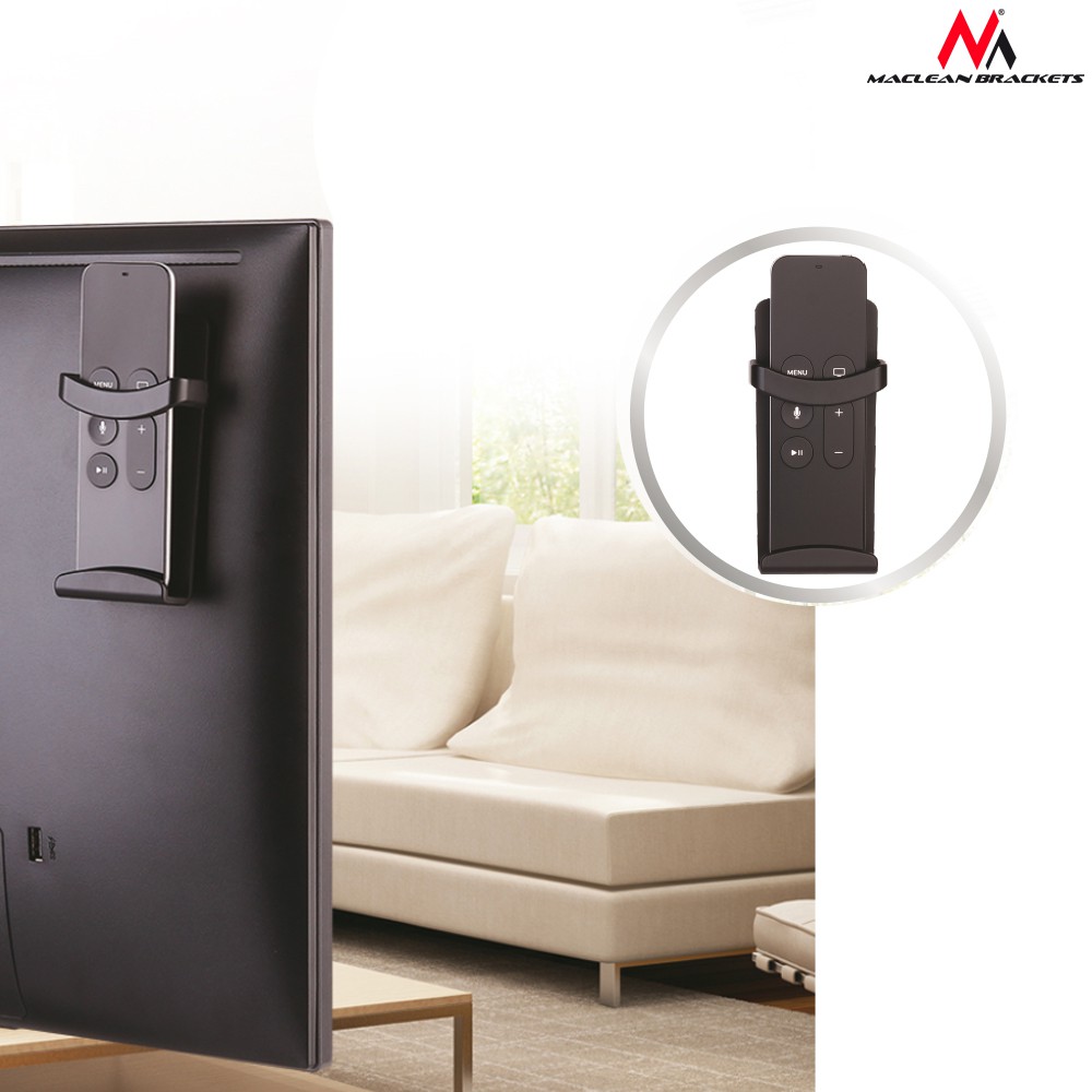 Uchwyt do pilota Maclean MC-755 Solidny i wytrzymały uchwyt na pilota.Dzięki wbudowanym magnesom oraz załączonej taśmie dwustronnej uchwyt można zamocować w najbardziej dogodnym dla siebie miejscu, również z tyłu telewizora.Uchwyt kompatybilny jest z