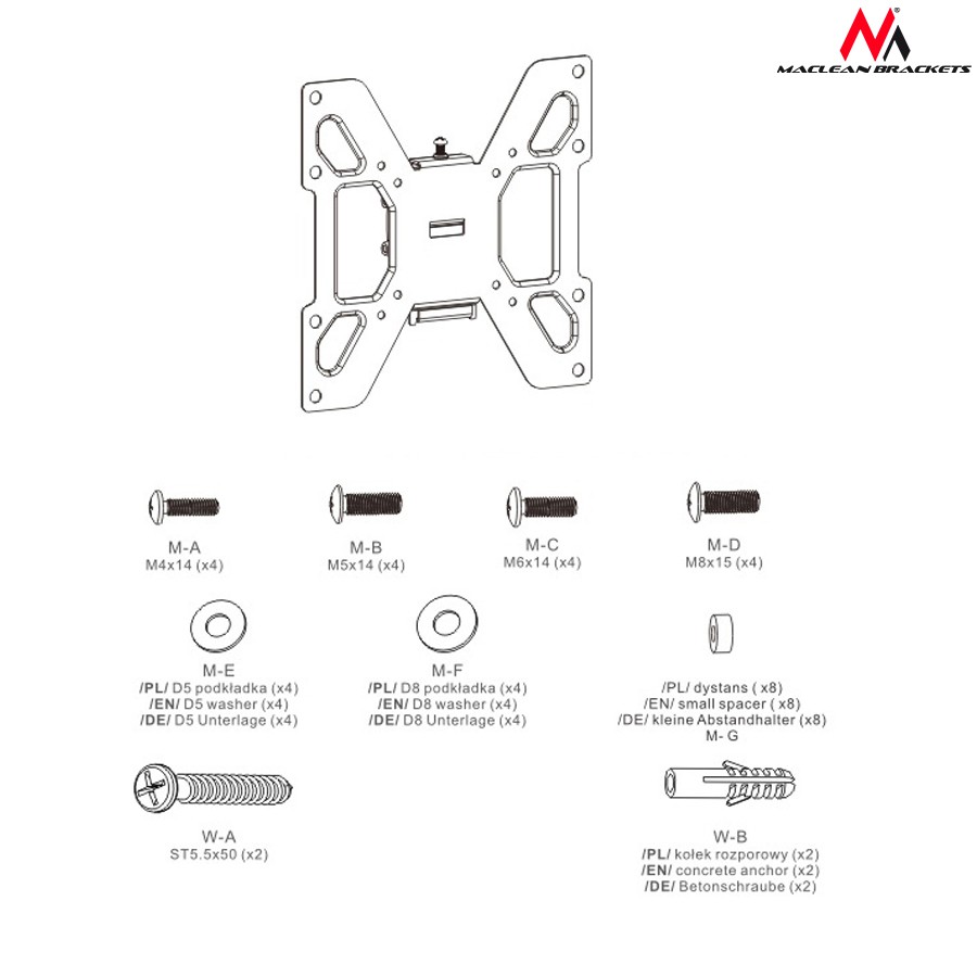Opis produktu:Doskonały uchwyt do telewizorów lub monitorów LCD od 17'' do 37''. Niewielkie wymiary i niewielka waga uchwytu (0,95kg) pozwalają zamocować urządzenie nawet na lekkich ściankach. Waga zamontowanego telewizora lub mon
