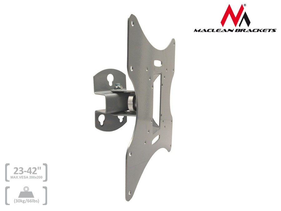 Opis produktu: Uchwyt do telewizora Maclean MC-501A S to wysokiej jakości płaski uchwyt ścienny do telewizorów i ekranów LCD/TFT o przekątnej z zakresu od 23 do 42 cali. Dzięki płaskiej konstrukcji uchwyt do TV pozwala na zawieszenie telewizora lub m