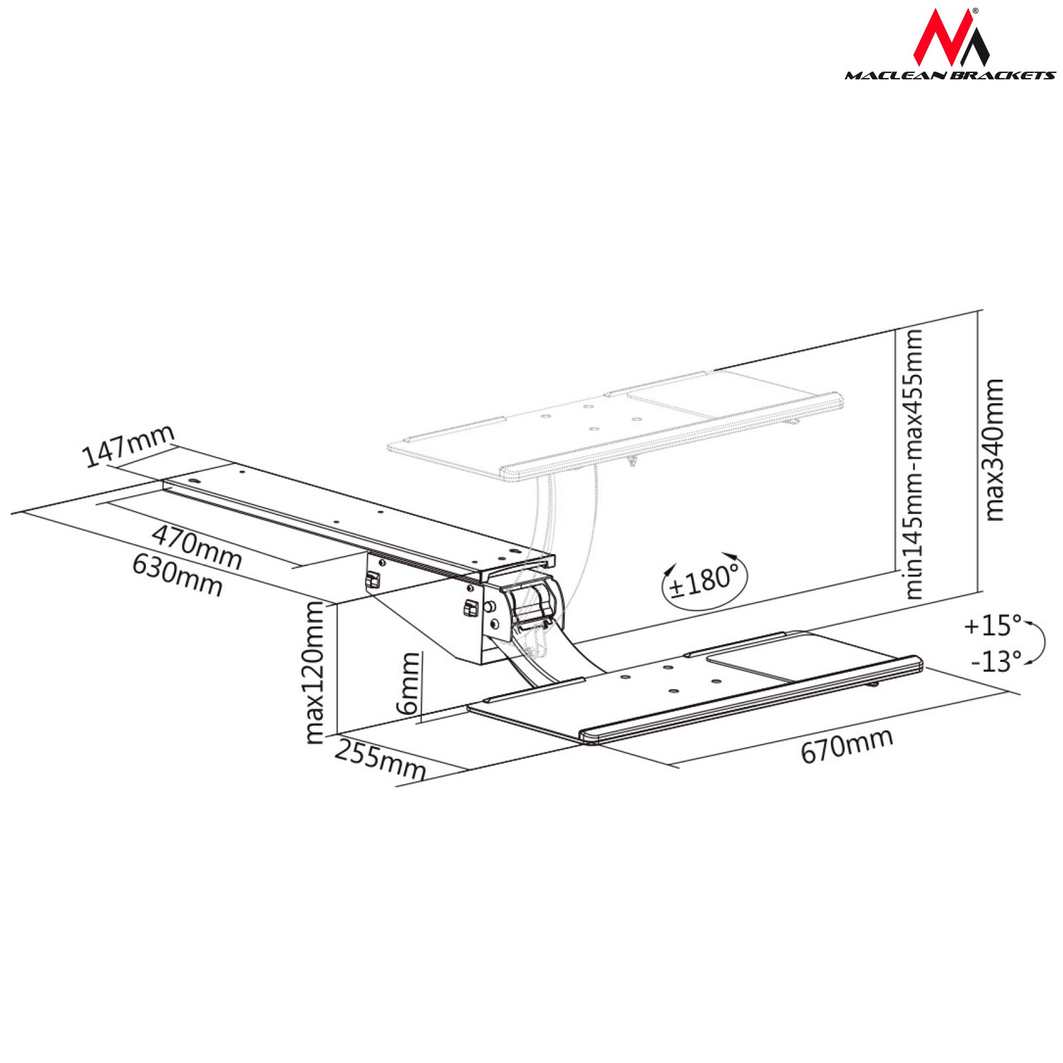 Maclean MC-795Uniwersalny uchwyt na klawiaturę to doskonałe uzupełnienie biurka komputerowego. Uchwyt mocuje się do blatu biurka. Dzięki takiemu rozwiązaniu uzyskujemy ergonomiczne stanowisko pracy. Ogromne możliwości regulacyjne pozwolą dostosować p