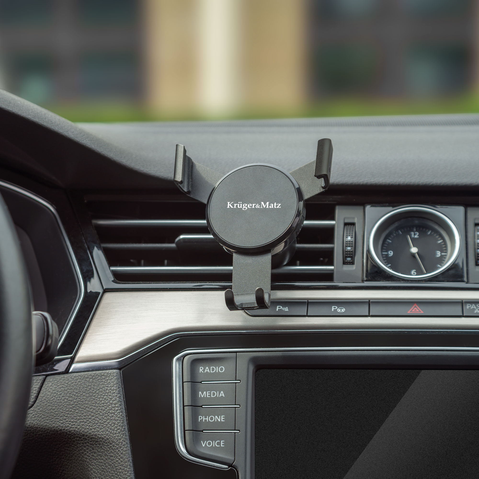 Uchwyt grawitacyjny do kratki nawiewu Kruger&Matz Montowany do kratki nawiewu uchwyt grawitacyjny do telefonu Kruger&Matz to niezwykle proste w montażu oraz praktyczne akcesorium, które z pewnością przyda Ci się w Twoim aucie, zwłaszc