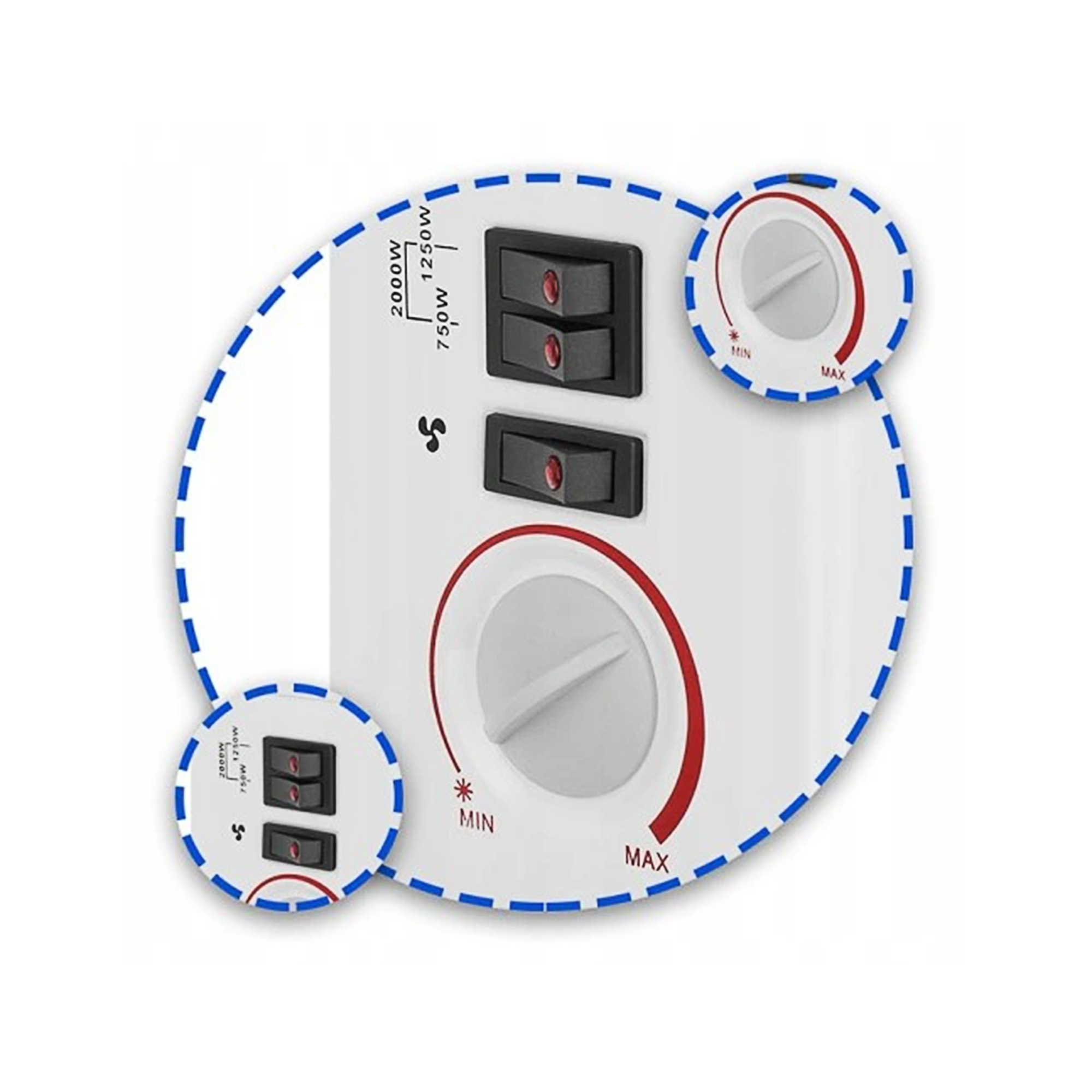 Max moc 2000 W,3 stopnie mocy 750/1250/2000W,dodatkowy nawiew, funkcja TURBO,wbudowany termostat,regulacja nadmuchu,zabezpieczenie przed przegrzaniem,lampka kontrolna,duże otwory wentylacyjne,wyjątkowo łatwy i wygodny w obsłudze,solidna konstrukcja i