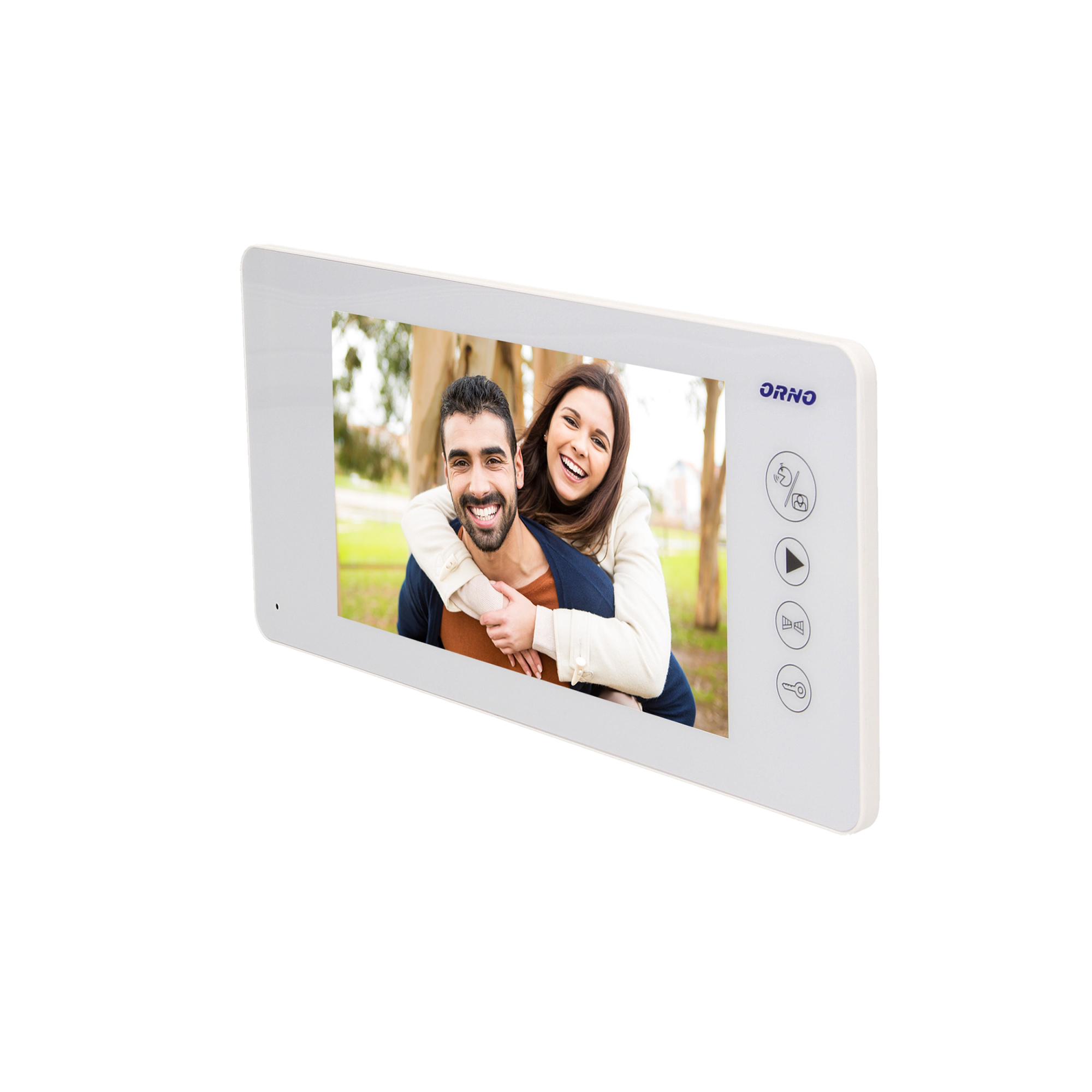 Wideo monitor do rozbudowy zestawów wideodomofonowych EQUES, ARCUS MEMO oraz LIBER MEMO, obsługuje dwa wejścia (możliwość podłączenia 2 kamer wideodomofonowych), kolorowy, ultrapłaski, bezsłuchawkowy, LCD 7˝, dotykowy panel monitora z podświetlanymi