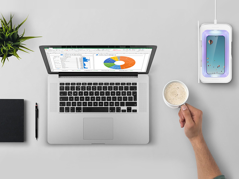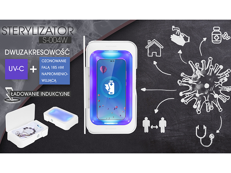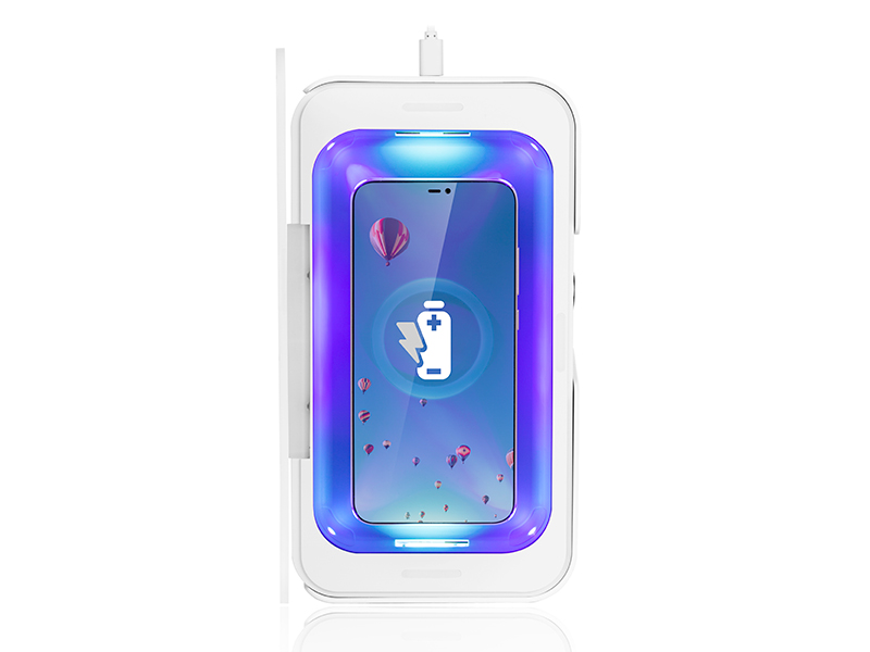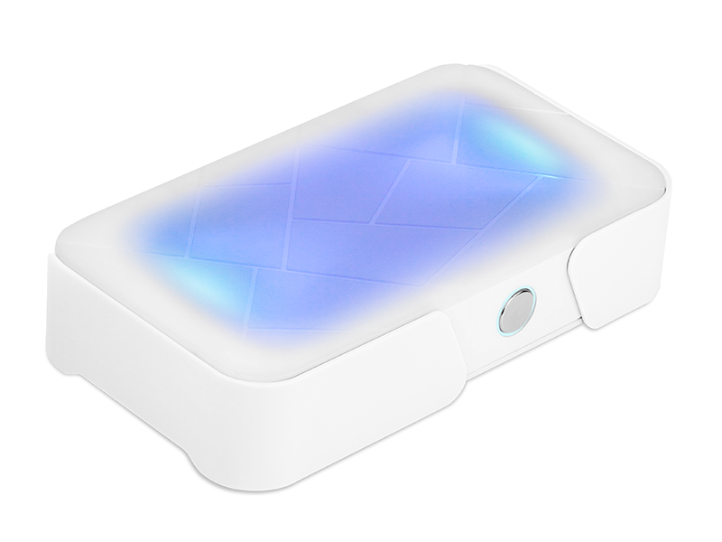 Elegancki i praktyczny sterylizator z lampą UV do telefonów komórkowych, słuchawek, kluczy i wszelkich drobiazgów osobistych. To nowoczesne urządzenie nie tylko zdezynfekuje Twój telefon, ale również posiada funkcję ładowania bezprzewodowego. -Elimin