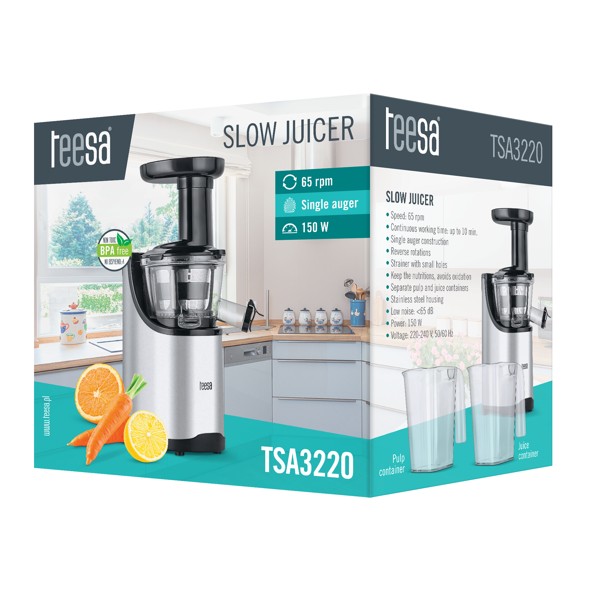 Wyciskarka wolnoobrotowaLubisz zaczynać dzień od dawki witamin? Z pewnością pokochasz wyciskarkę wolnoobrotową Teesa do warzyw i owoców. Urządzenie jest wolne od BPA ? to znaczy, że zostało wyprodukowane bez użycia materiałów zawierających bisfenol,