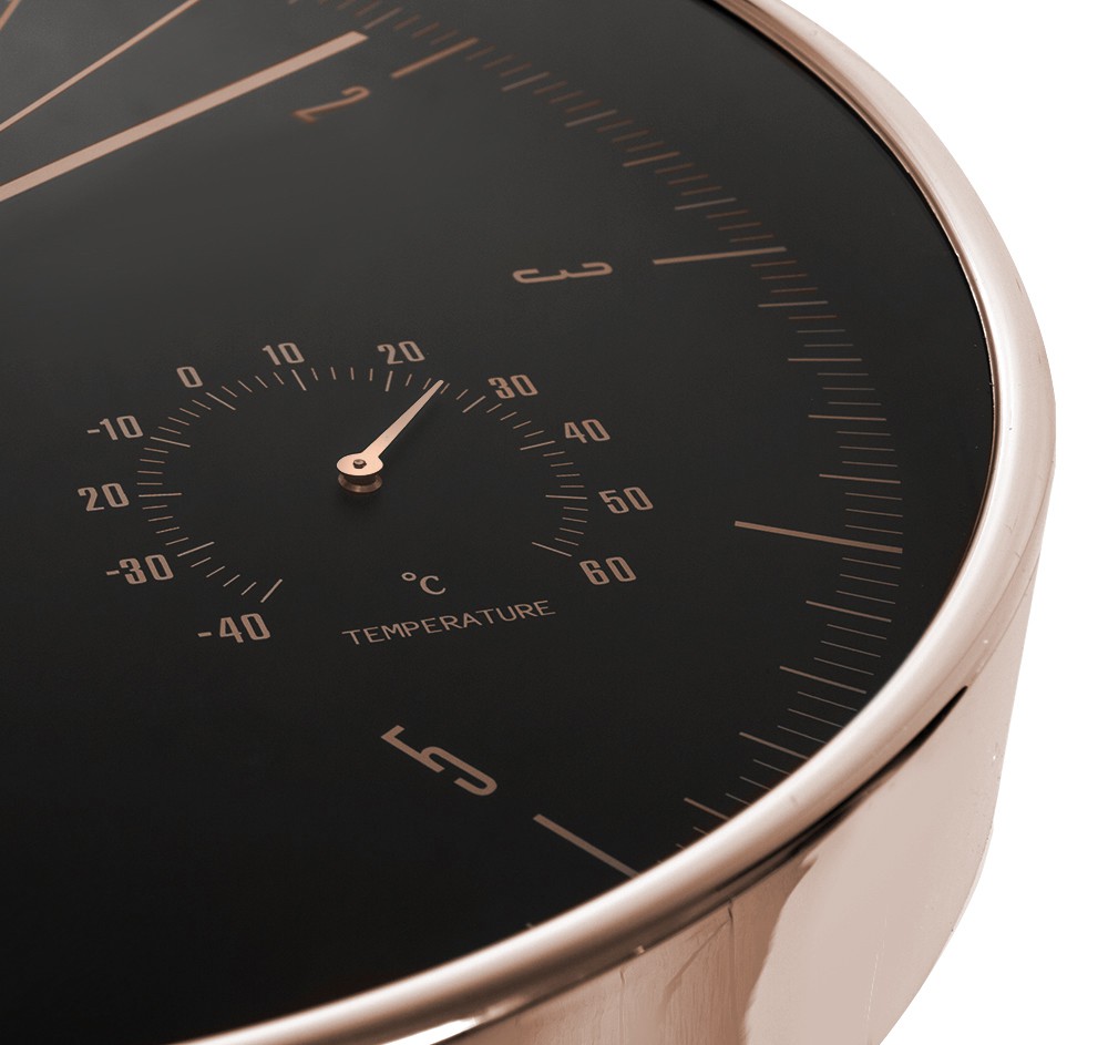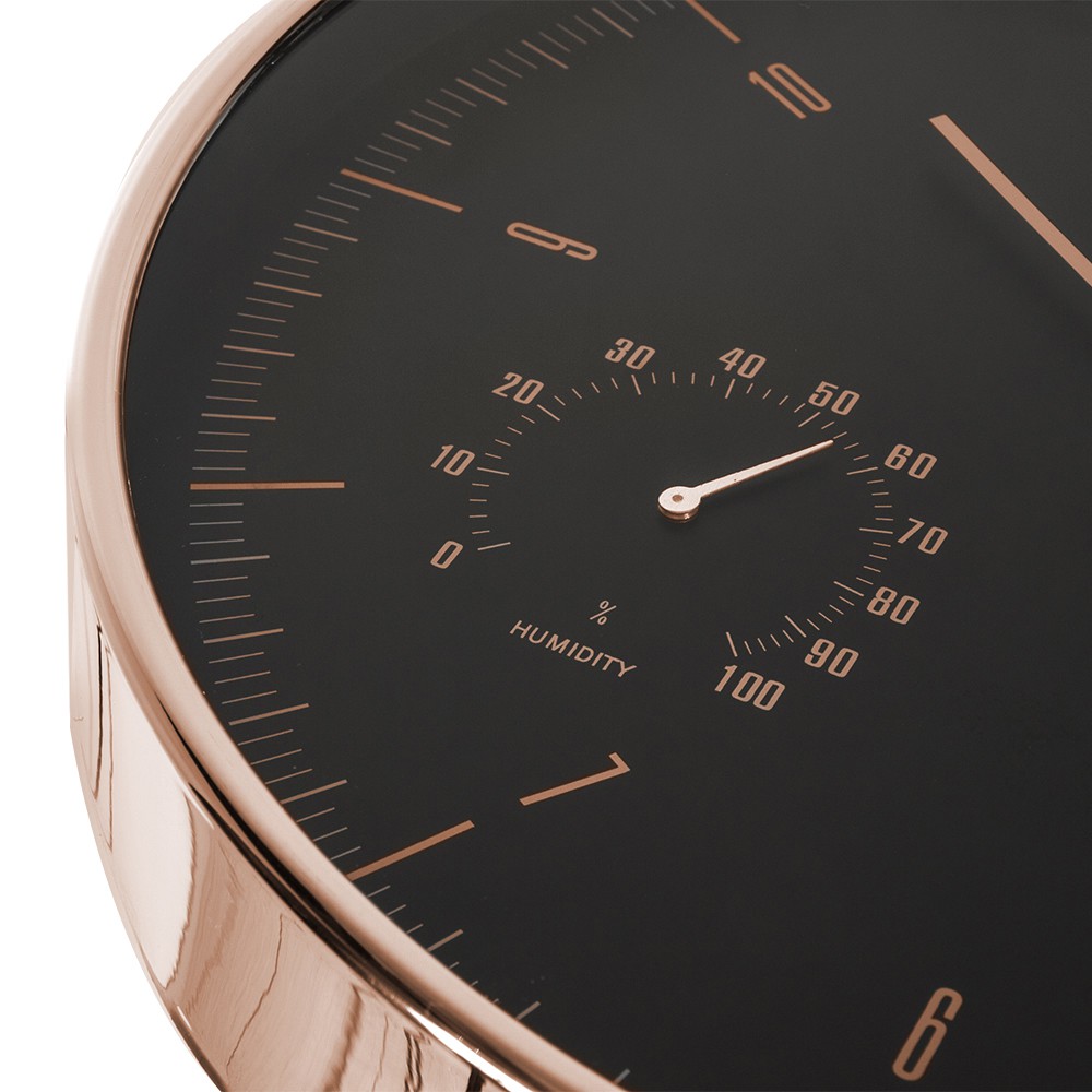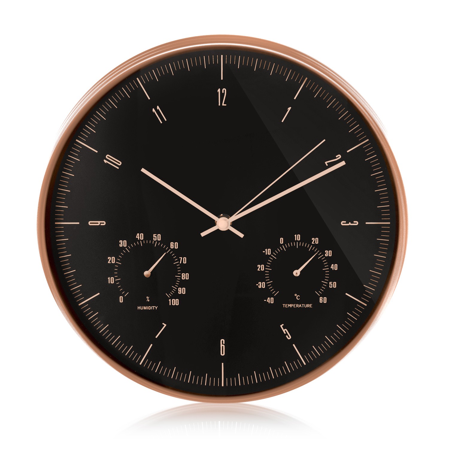 Zegar ścienny złoty 12'' 30cm z termometrem i higrometrem CE70 GZegar posiada cichy mechanizm poruszającymi wskazówkami (płynna praca = brak uciążliwego tykania!)Sporej wielkości cyferblat (średnica 30cm) pozwala bez wysiłku nawet osobą sta