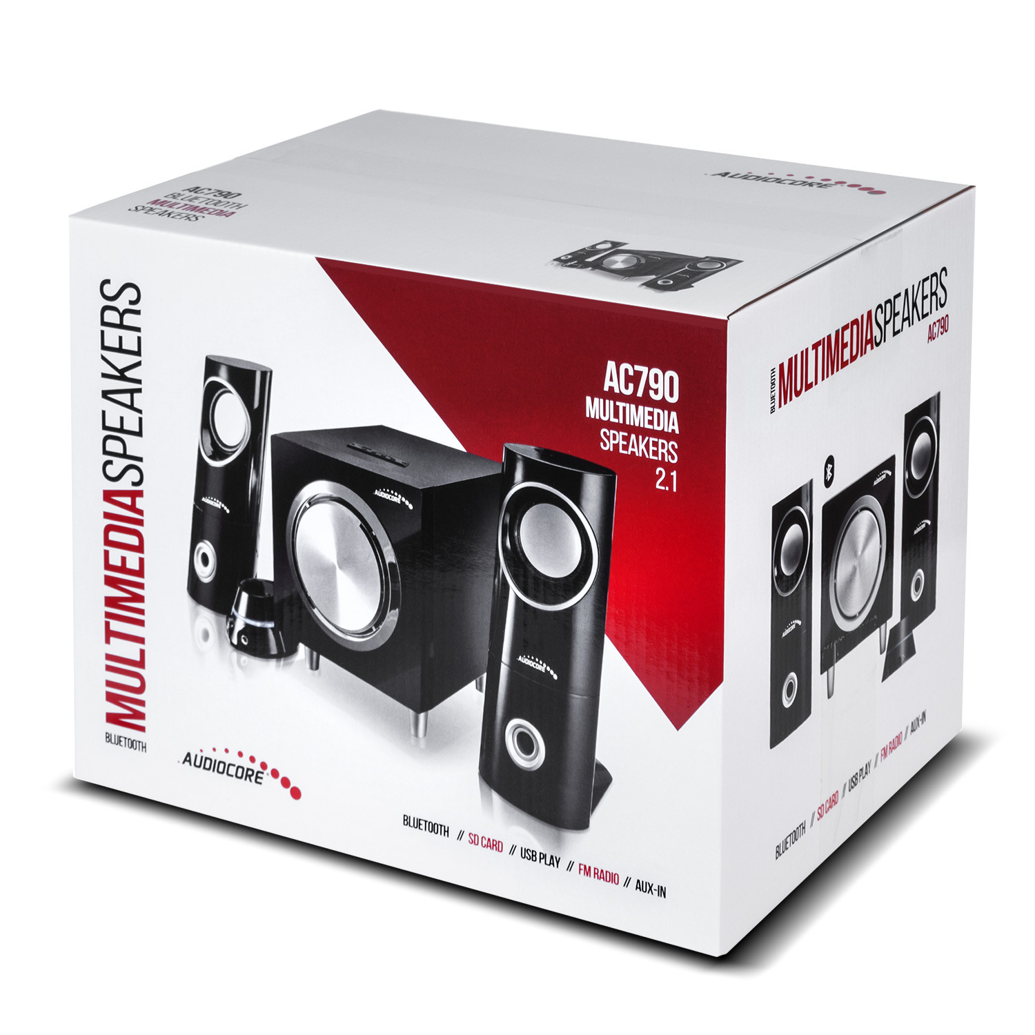 Audiocore AC790to zestaw głośnikowy 2.1 charakteryzujący się atrakcyjnym i nowoczesnym wzornictwem. Prezentowany zestaw Audiocore AC790 składa się z dwóch głośników satelitarnych, które zapewniają dźwięk stereo oraz z jednego głośnika niskotonowego,