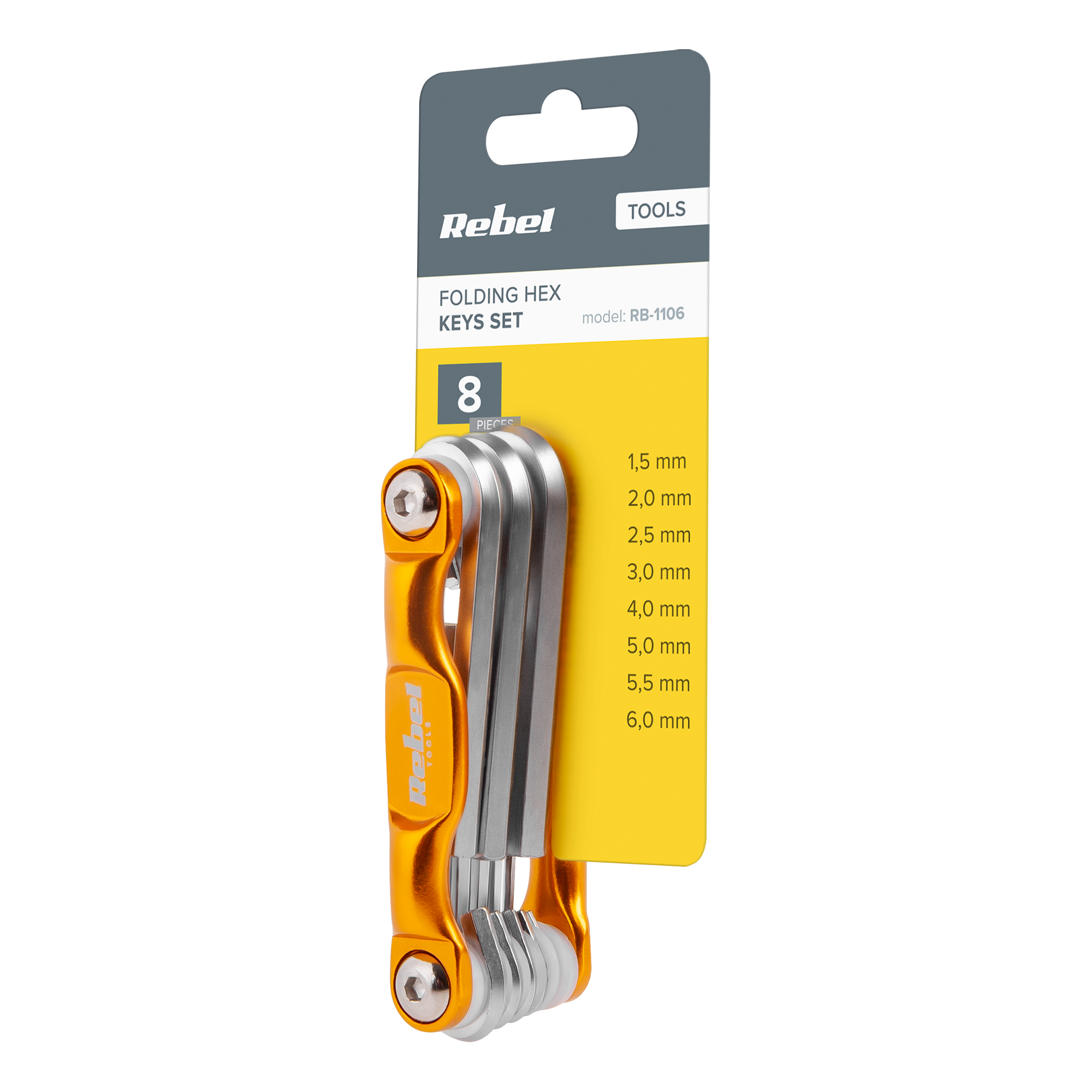 8 kluczy Hex: 1,5/ 2/ 2,5/ 3/ 4/ 5/ 5,5/ 6 mmWykonane ze stali chromowo-wanadowejAnodowane aluminiowe uchwyty odporne na korozję