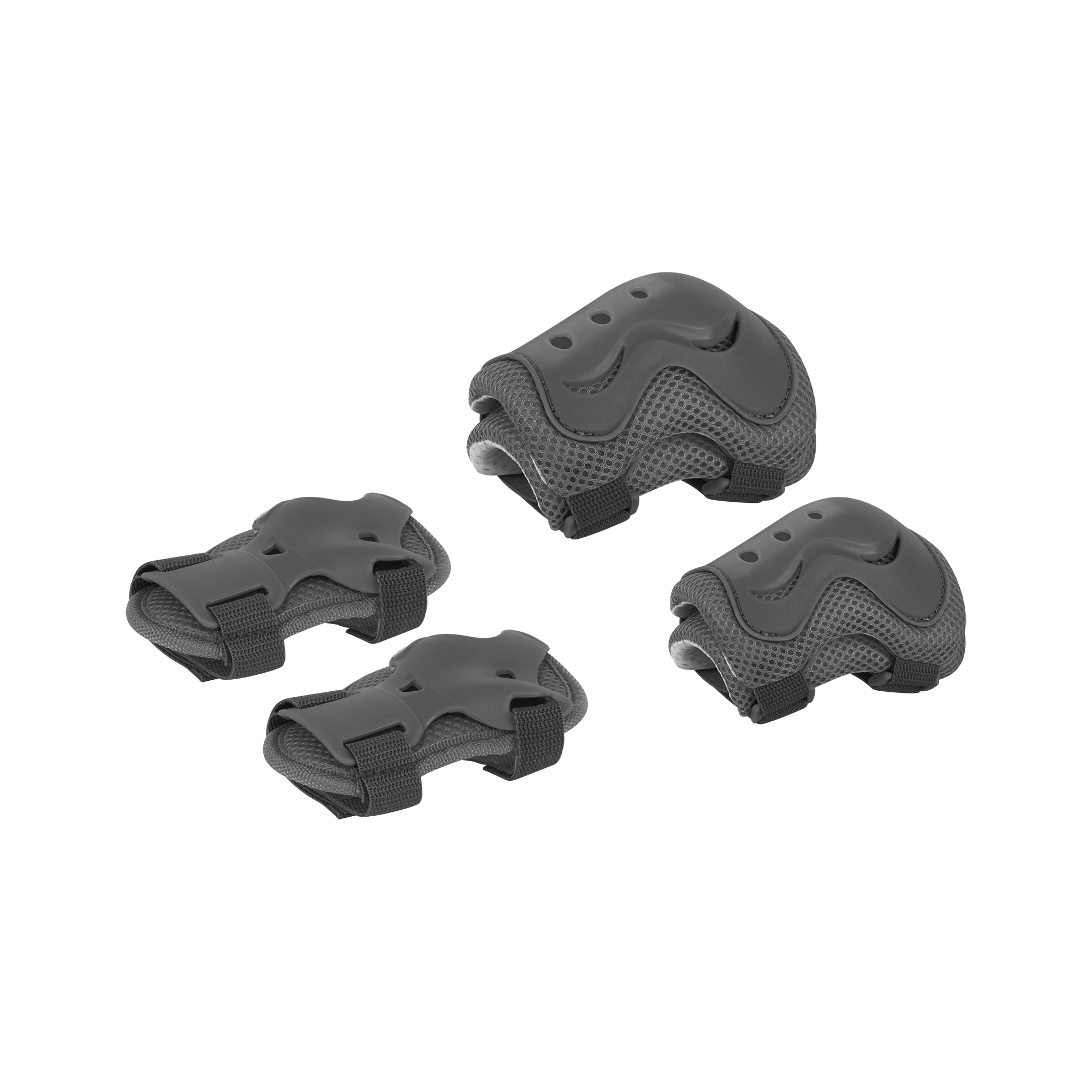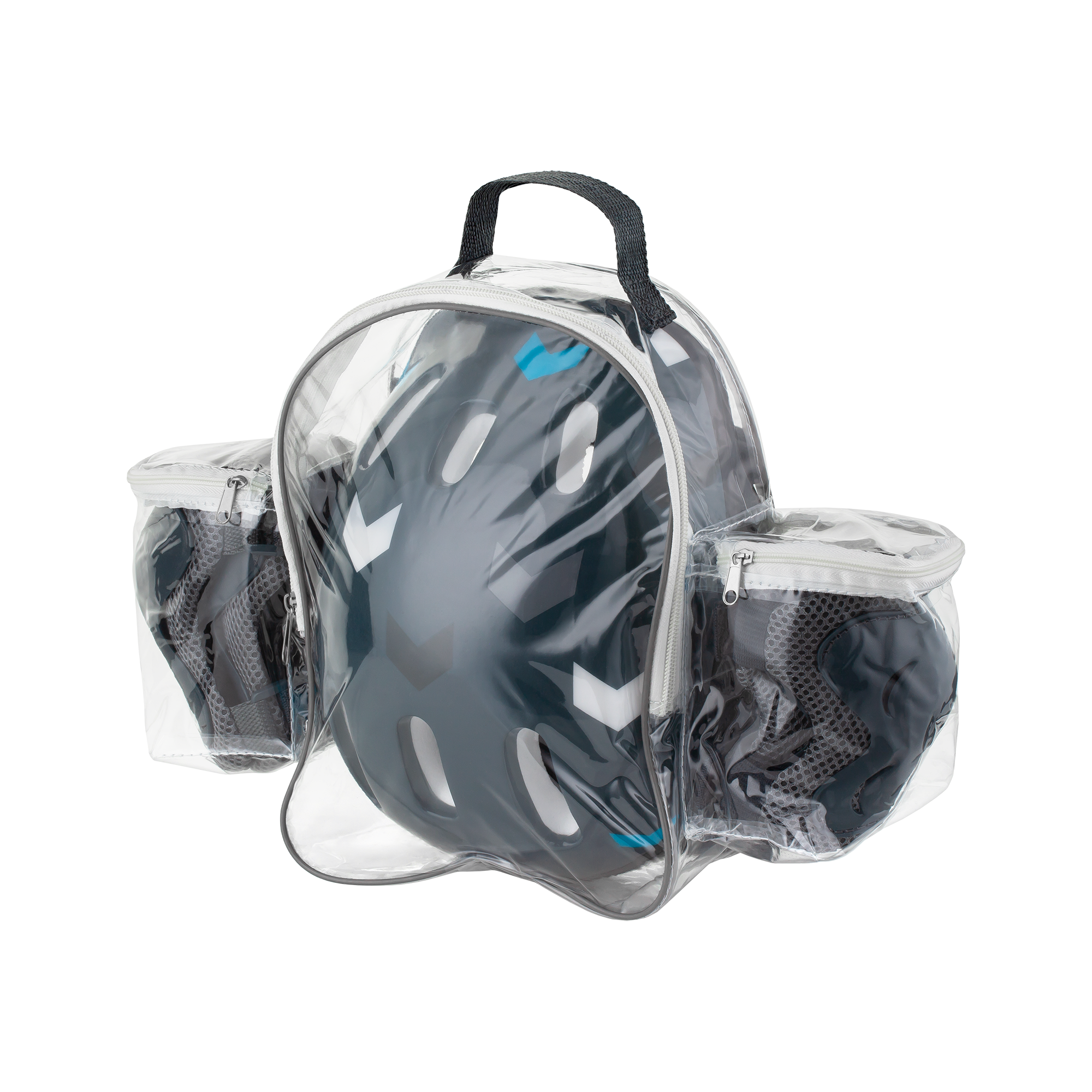 Zawartość zestawu:- Ochraniacz na łokcie: 2 szt.- Ochraniacz na kolana: 2 szt.- Ochraniacz na nadgarski: 2 szt.- Kask: 1 szt.- Plecak: 1 szt.Obwód wewnętrzny kasku: 53,5 cmMateriał wykonania: PVC, EVA, PEDostępne kolory: Szarym i różowym