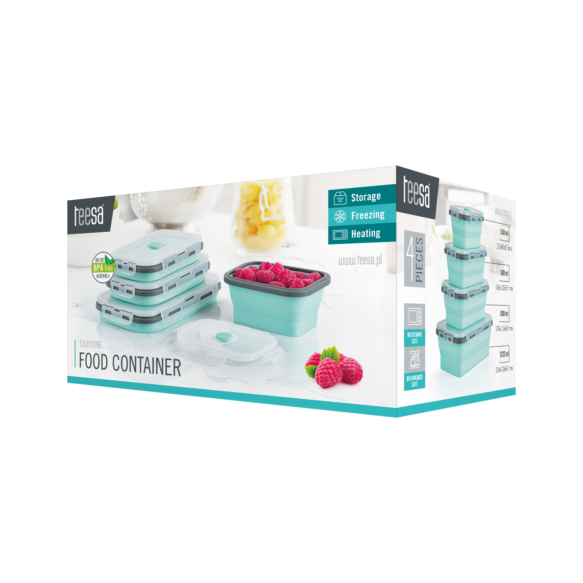 Pojemniki na żywnośćCztery pojemniki na żywność Teesa to praktyczny zestaw, który z pewnością przyda się w każdym domu. Ich funkcjonalność sprawia, że sprawdzą się do przenoszenia lunchu do pracy, szkoły oraz będą niezastąpione w czasi