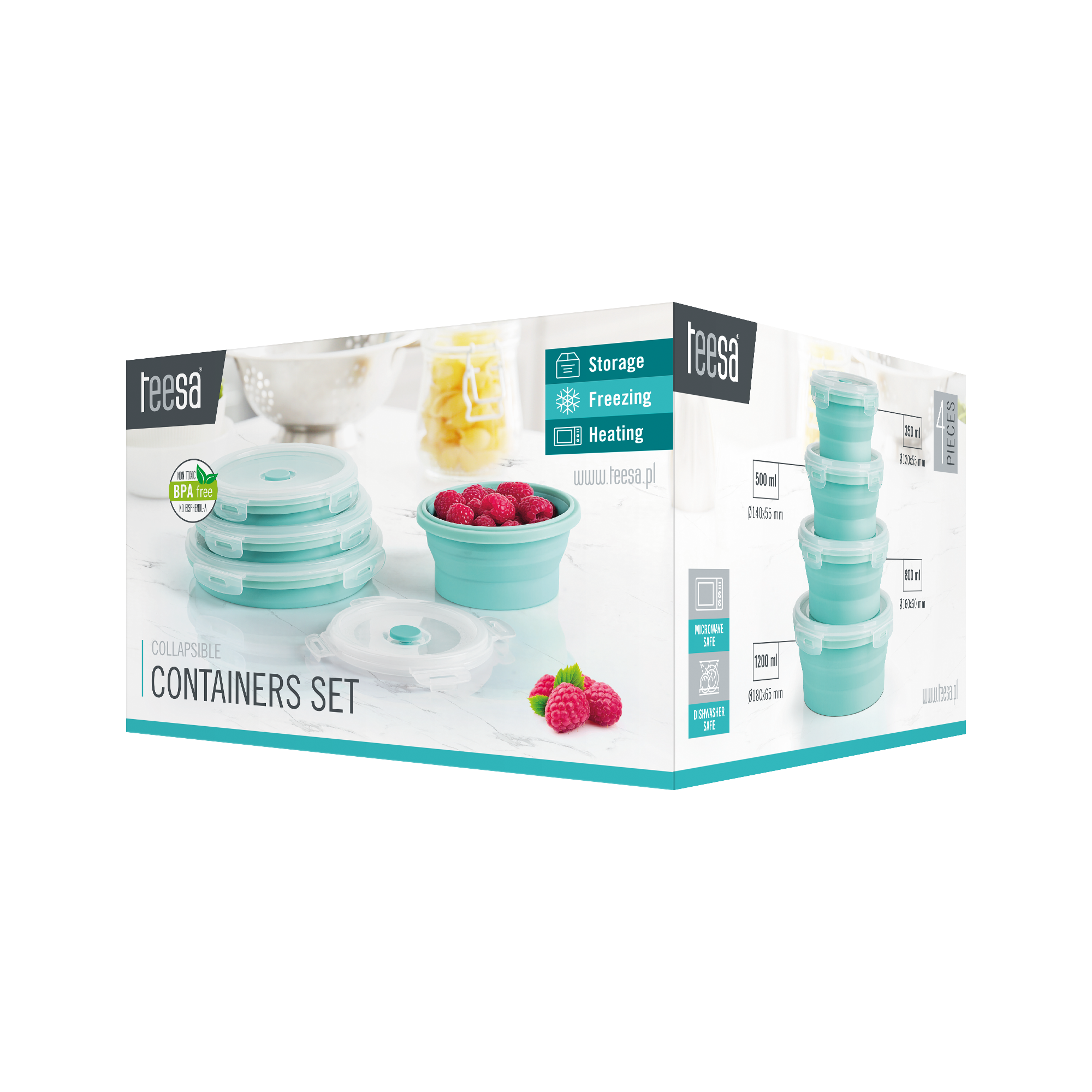 Okrągłe pojemniki na żywnośćCztery okrągłe pojemniki na żywność Teesa to praktyczny zestaw, który z pewnością przyda się w każdym domu. Ich funkcjonalność sprawia, że sprawdzą się do przenoszenia lunchu do pracy, szkoły oraz będą nieza
