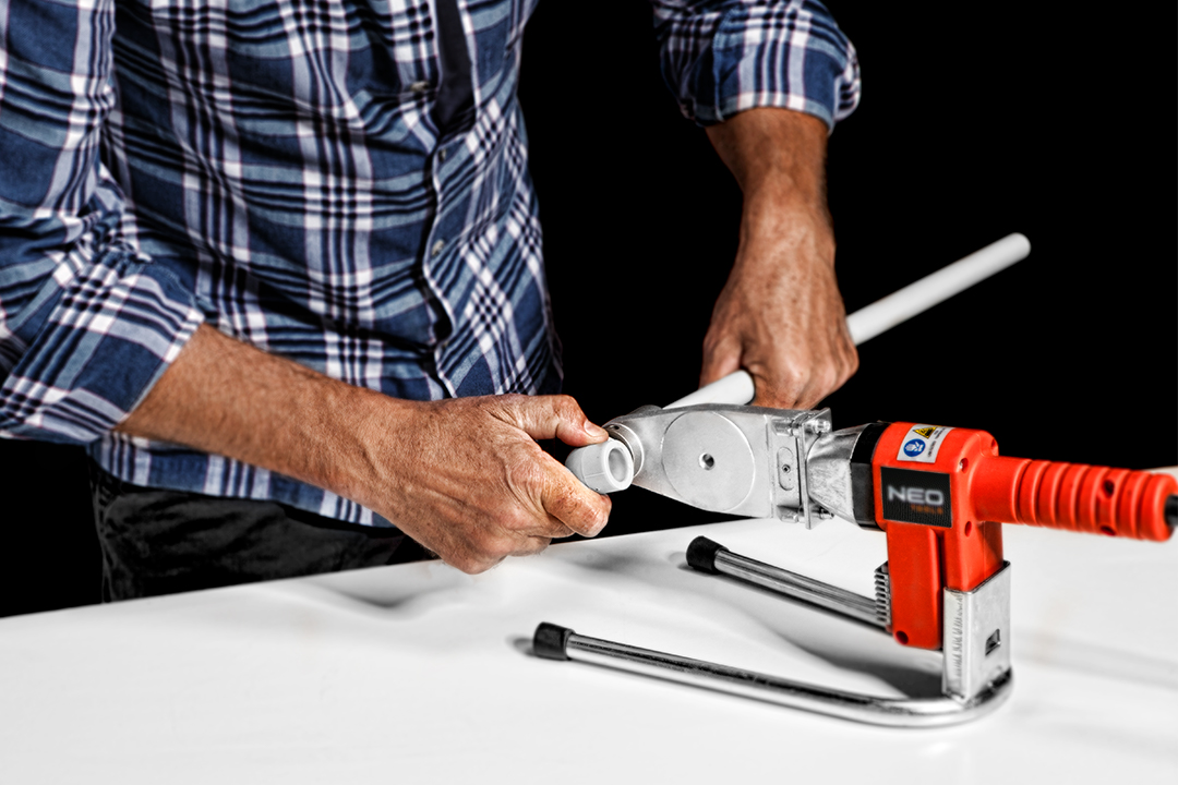 Zgrzewarka do rur z tworzyw sztucznych 650W, 4 tuleje grzewcze, powłoka PTFE o O: 20, 25, 32, 40 mm, do mufek i rur: PE, PP, PB o O do 40 mm, zasilanie 230V, 50Hz, masa 4.4 kg, temperatura głowicy 260°C, stojak, walizka, CE