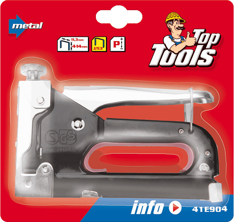 Zszywacz tapicerski 6-14 mm, zszywki J, metalowy korpus, regulacja siły wbijania, pierścień blokujący
