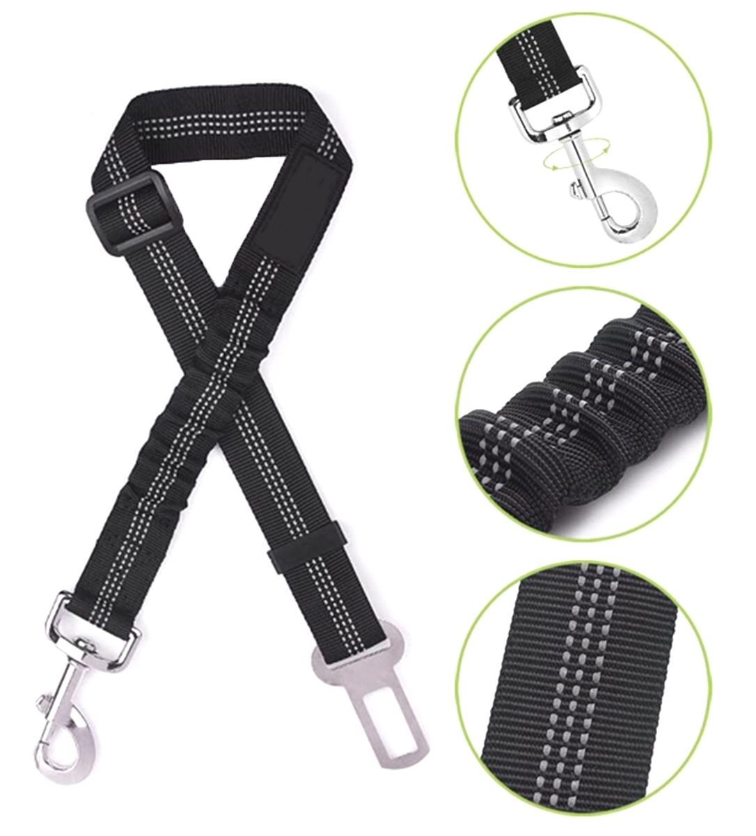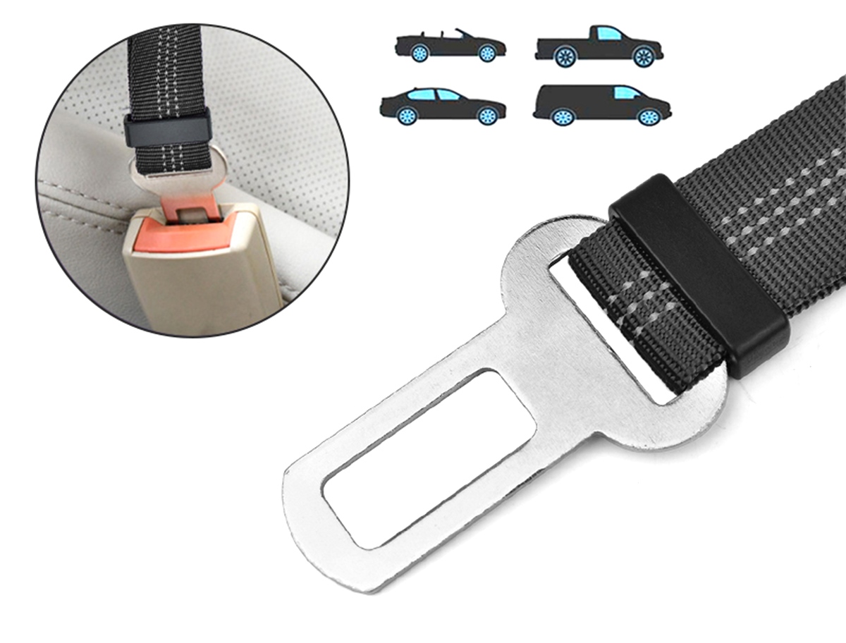 Samochodowa smycz dla zwierząt, przypinana do szelek samochodowych lub obroży za pomocą karabińczyka na końcu smyczy. Pas bezpieczeństwa pozwala w bezpieczny sposób podróżować z psem na tylnym siedzeniu bez konieczności instalowania krat